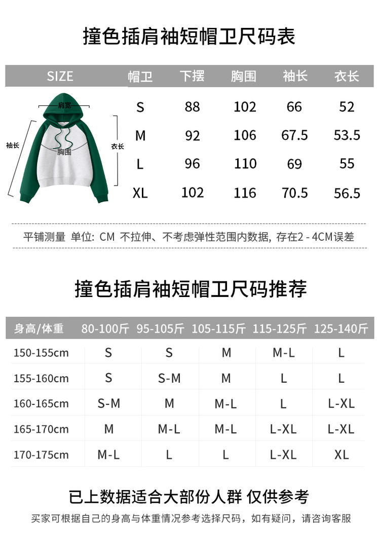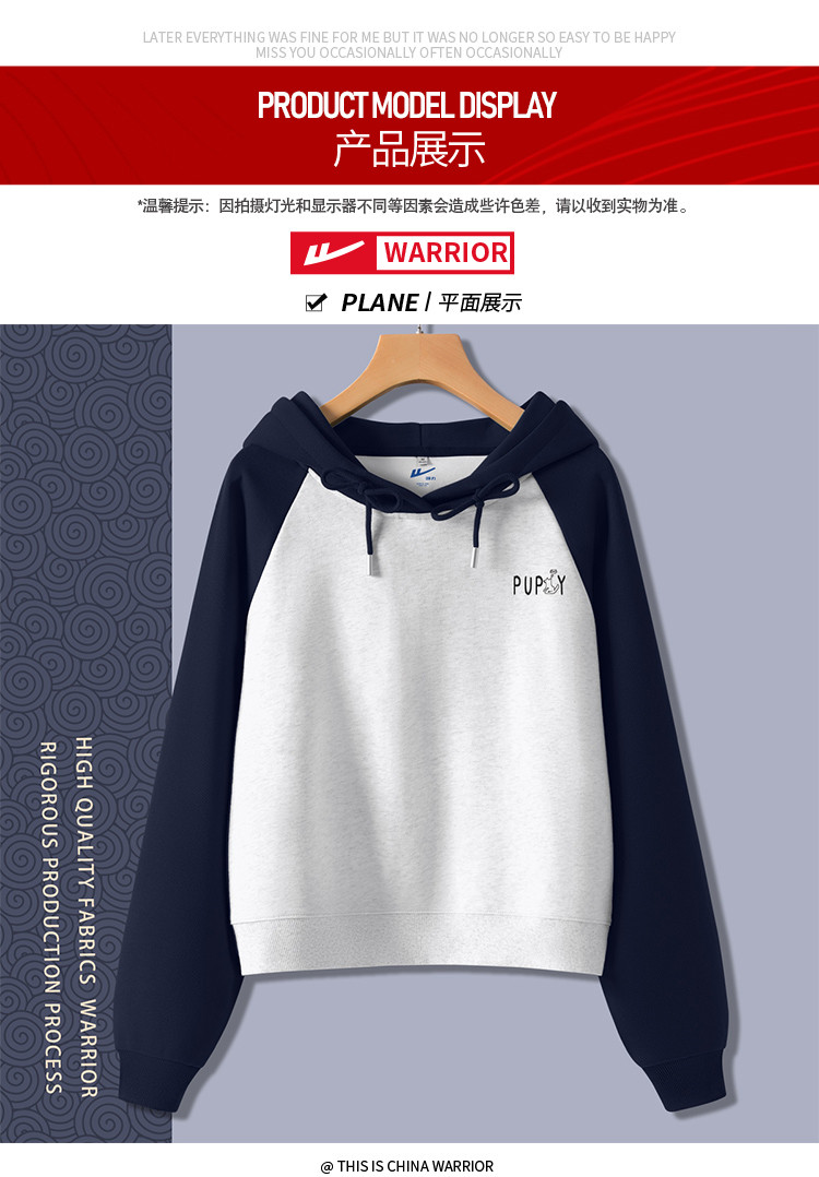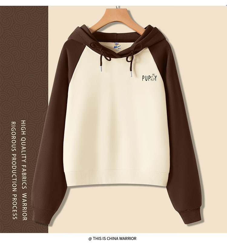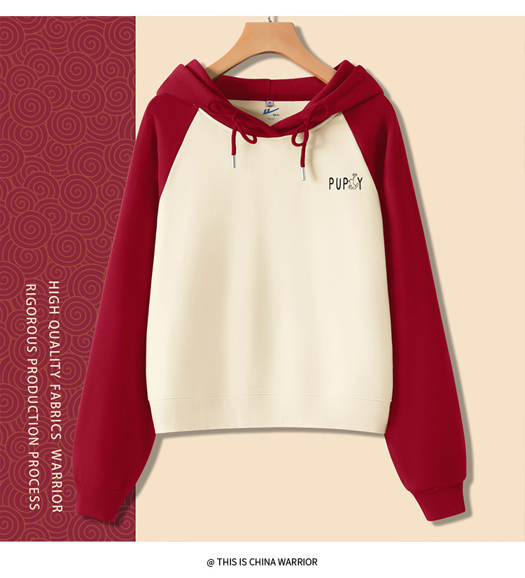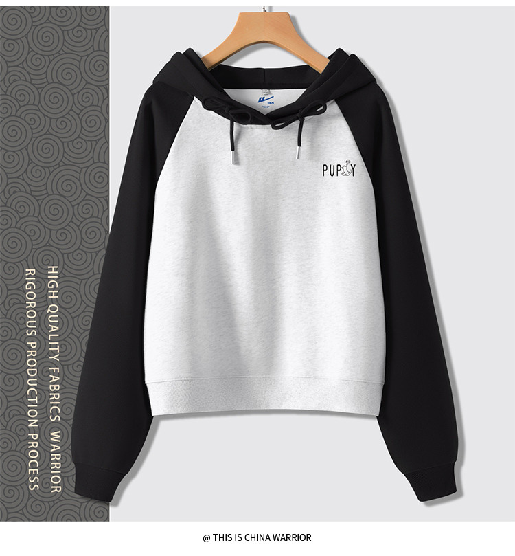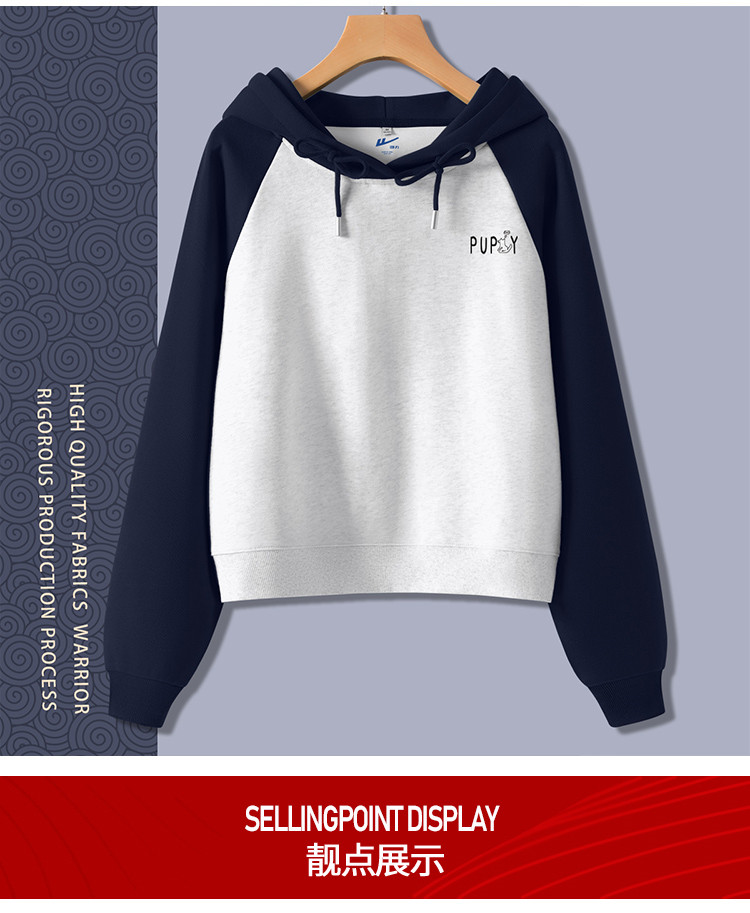 商品名称:【女装复古撞色】春秋女式设计感运动休闲连短款帽卫衣高腰小个子 854035