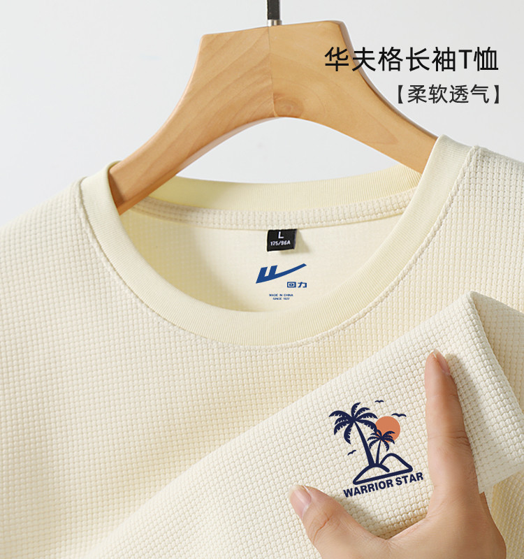 商品名称:【290克重磅】华夫格长袖T恤男圆领简约百搭垂顺舒适打底上衣 942739