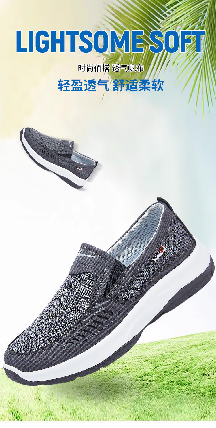 商品名称:回力男鞋夏款网面透气休闲老北京布鞋男士一脚蹬薄款网鞋爸爸鞋子 334981