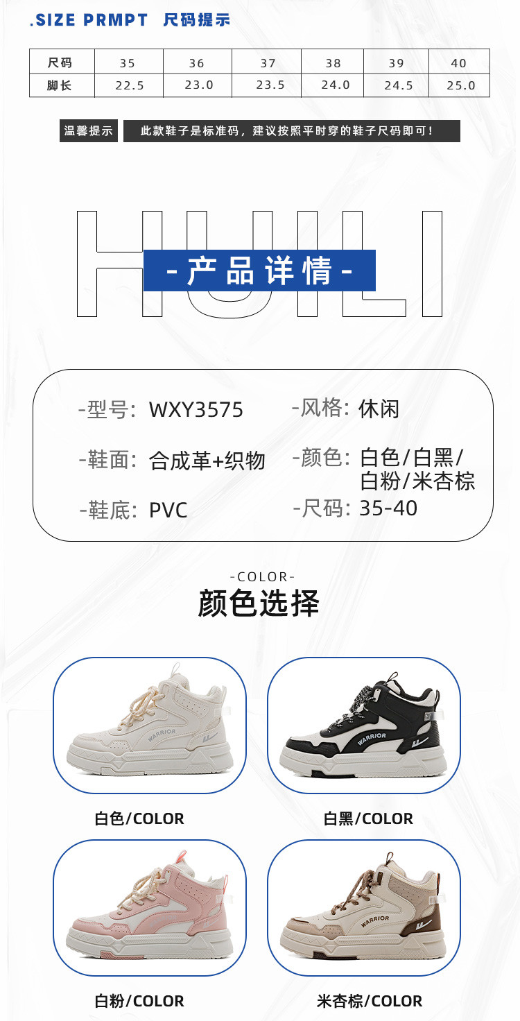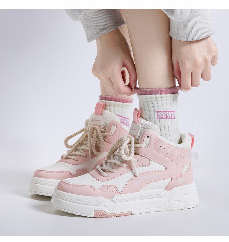 商品名称:【轻便学生高帮板鞋】25新款时尚百搭厚底板鞋女舒适软底小白鞋 888899