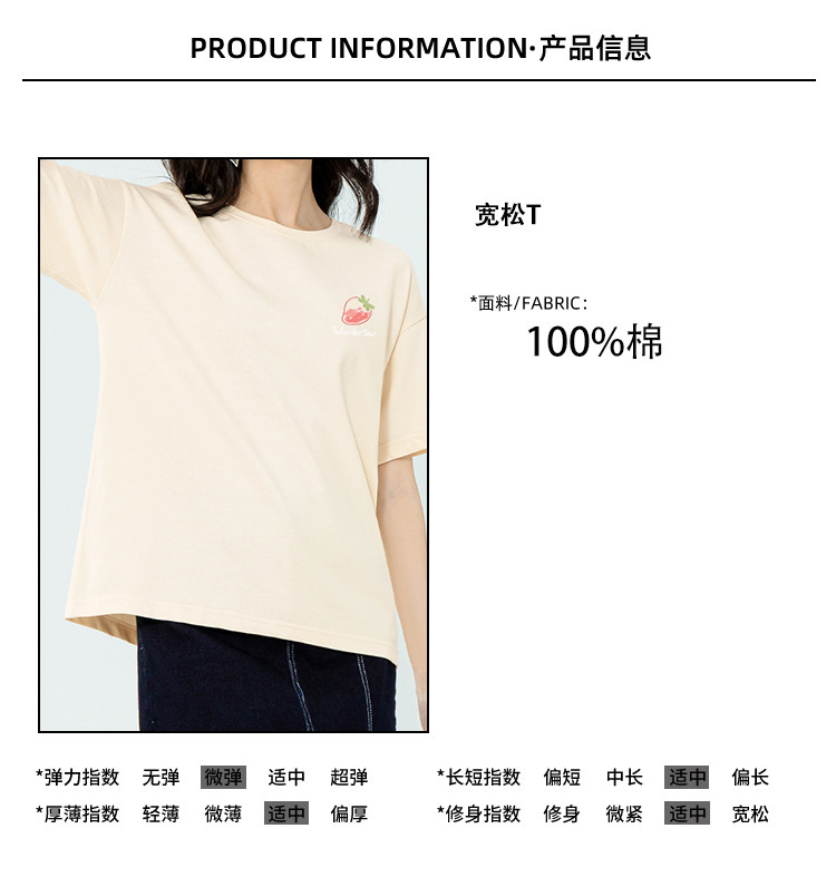 商品名称:【女装100%棉】女式短袖T恤纯棉透气上衣宽松打底衫 446419