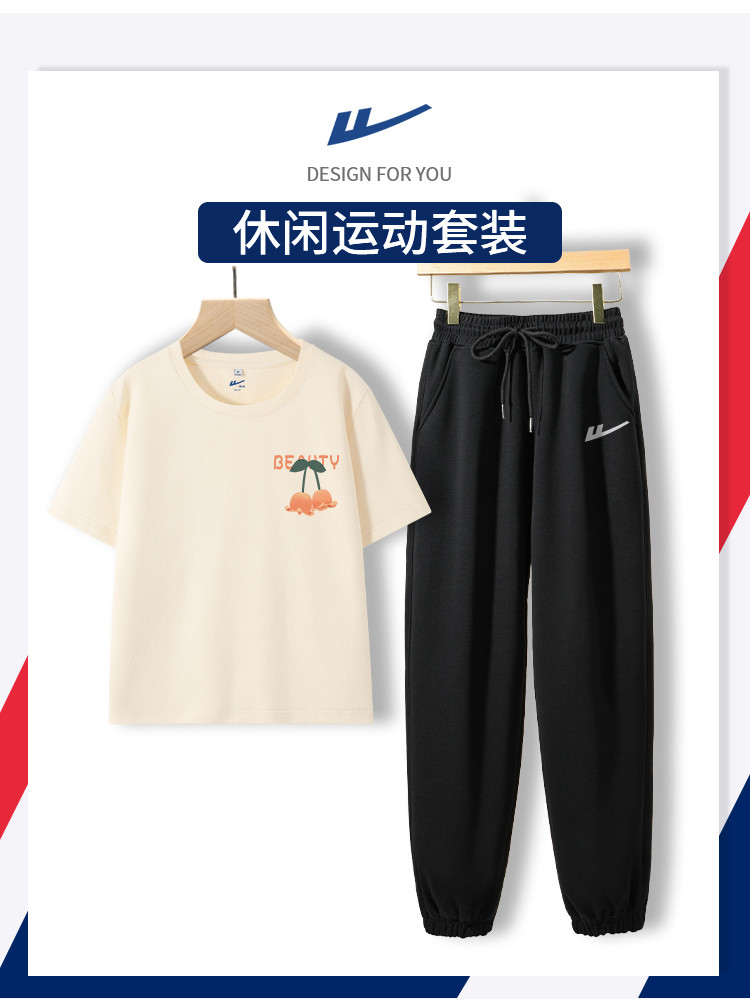 商品名称:【女装】夏季女式运动套装休闲橡筋收脚裤+宽松T两件装 112147