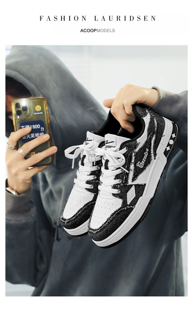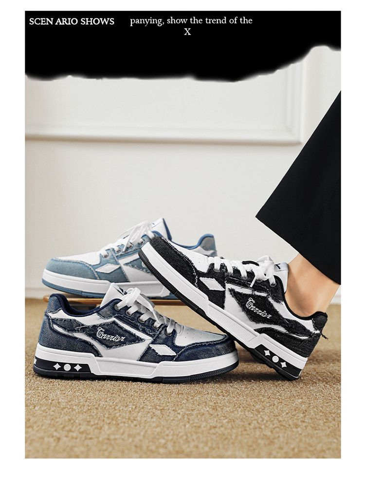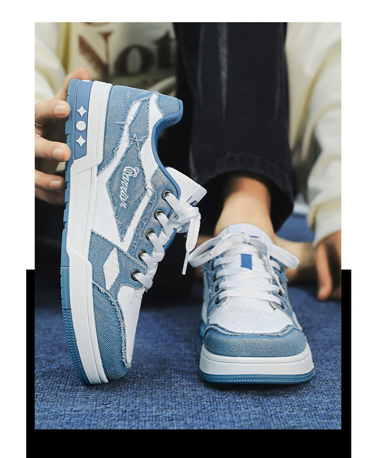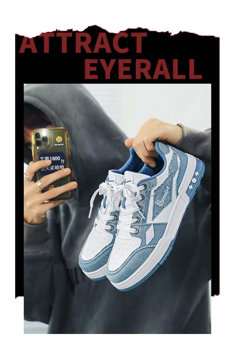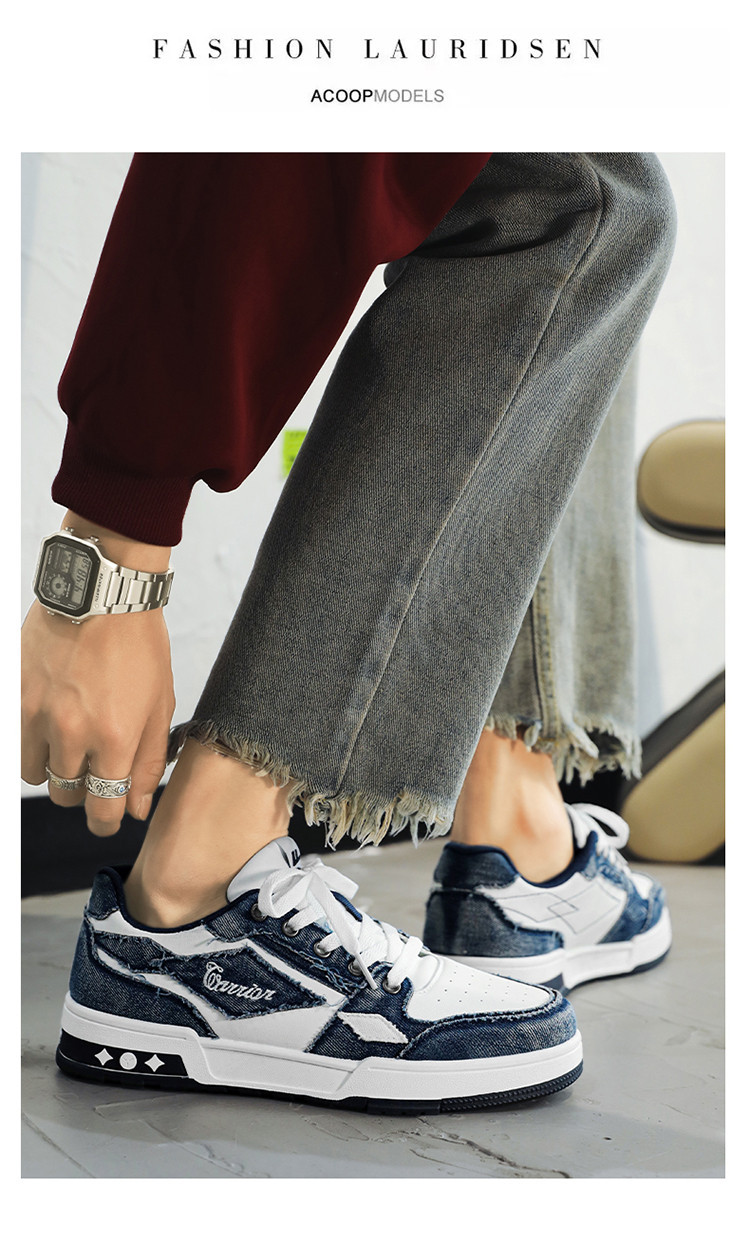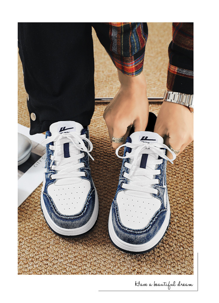 【复古风】秋季男士时尚拼接牛仔布板鞋男潮流休闲男鞋 147664