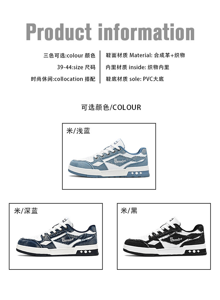 商品名称:【复古风】秋季男士时尚拼接牛仔布板鞋男潮流休闲男鞋 147664
