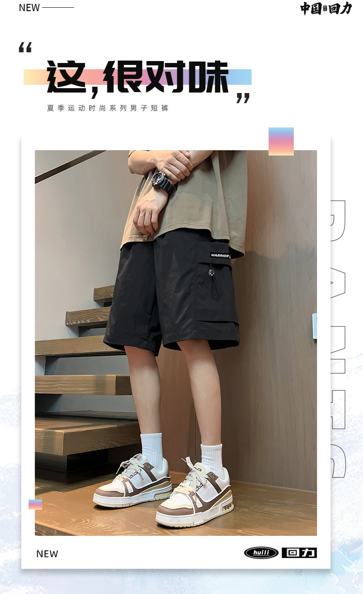 商品名称:短裤男女款夏季冰丝运动工装短裤宽松潮牌中裤五分多口袋运动裤子 795923