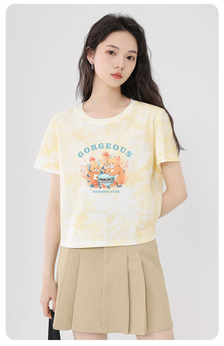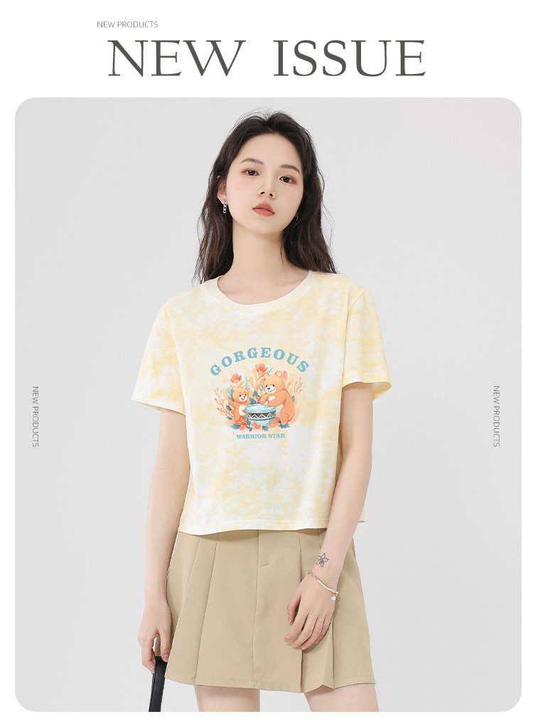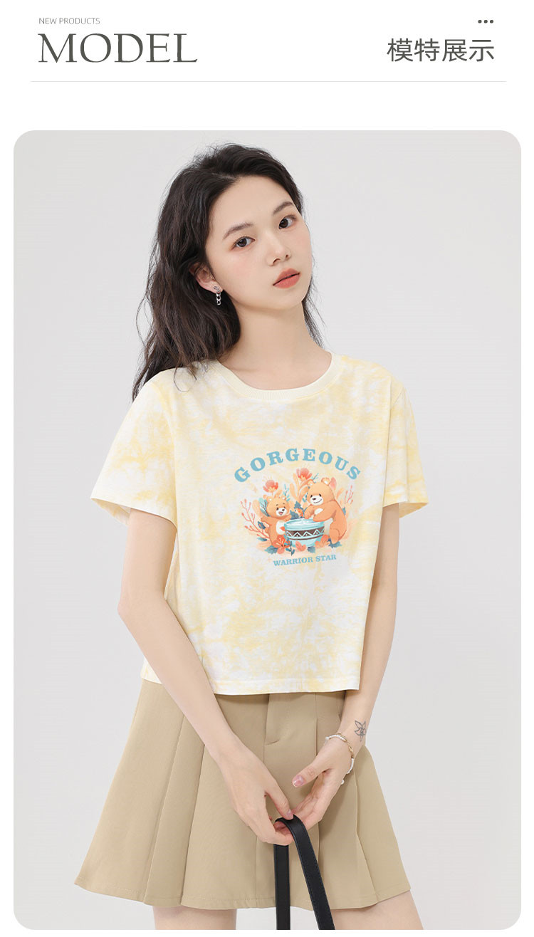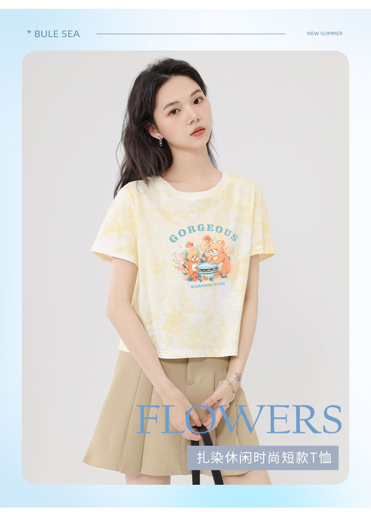 【女装100%棉】夏季扎染短袖纯棉女式T恤短款高腰显瘦设计感 114451