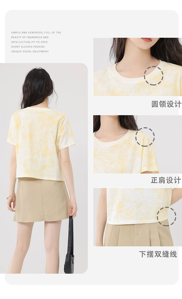 商品名称:【女装100%棉】夏季扎染短袖纯棉女式T恤短款高腰显瘦设计感 114451