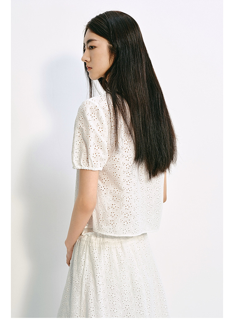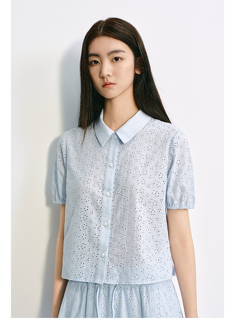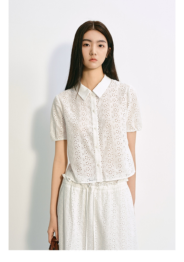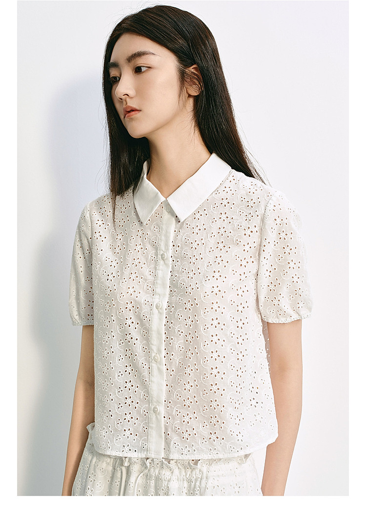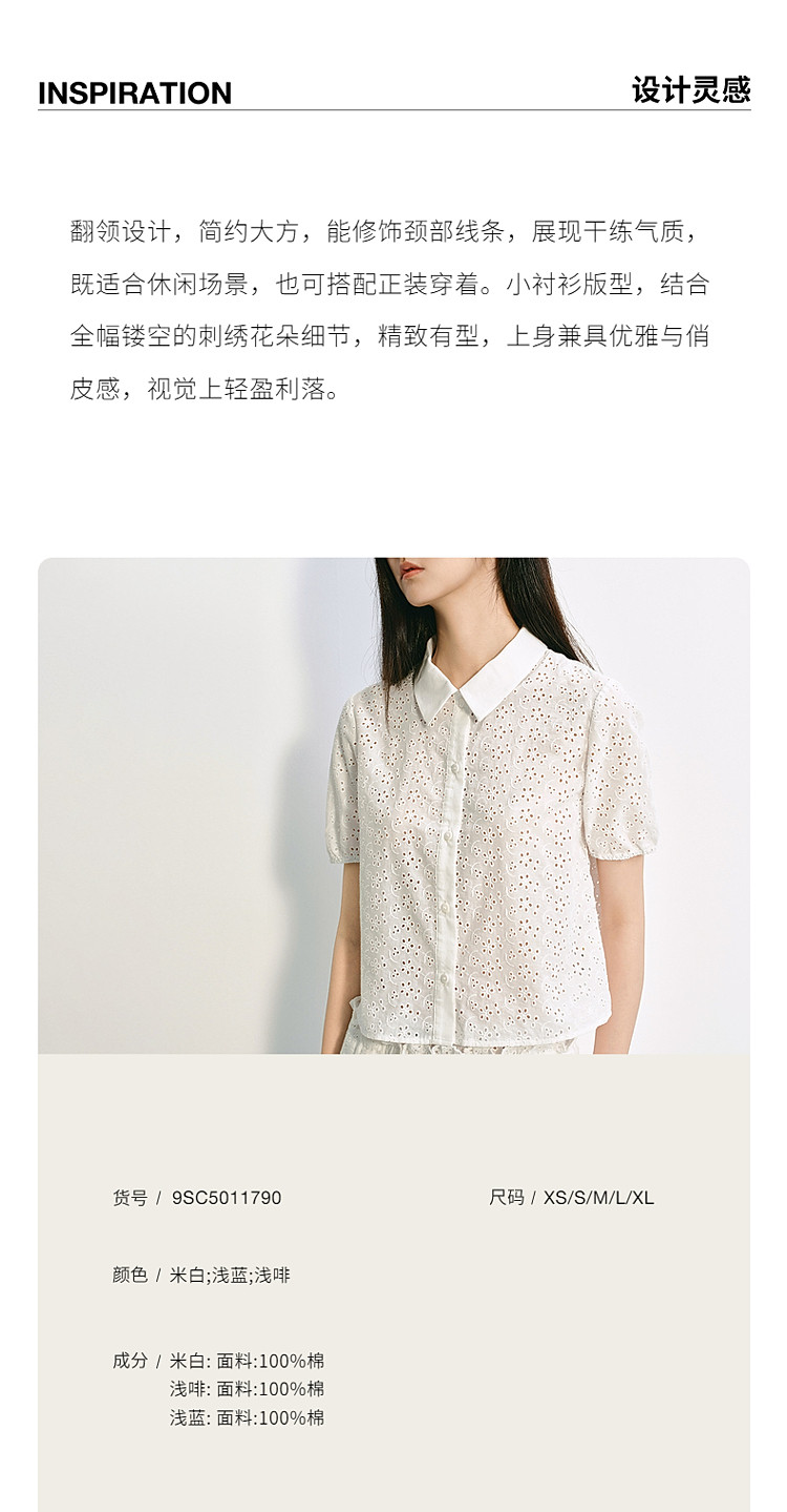 商品名称:限定系列OCH.夏装 上衣刺绣镂空透气100%棉短袖衬衫女 341455