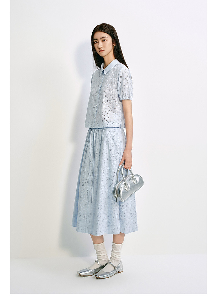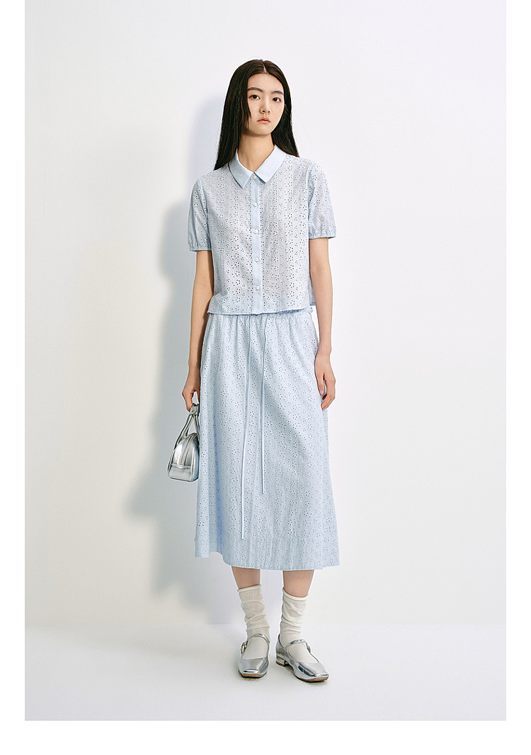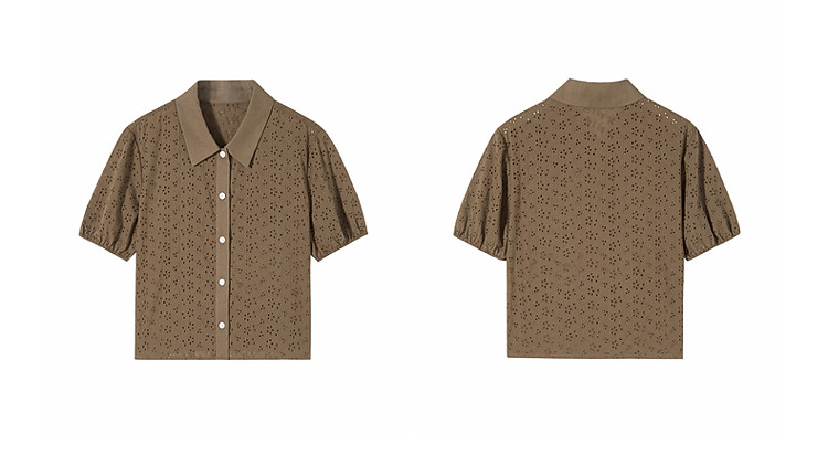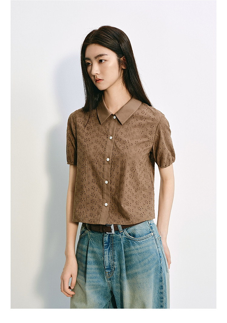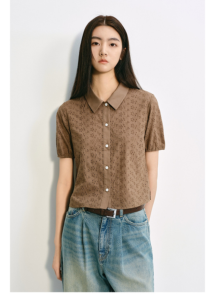 商品名称:限定系列OCH.夏装 上衣刺绣镂空透气100%棉短袖衬衫女 341455