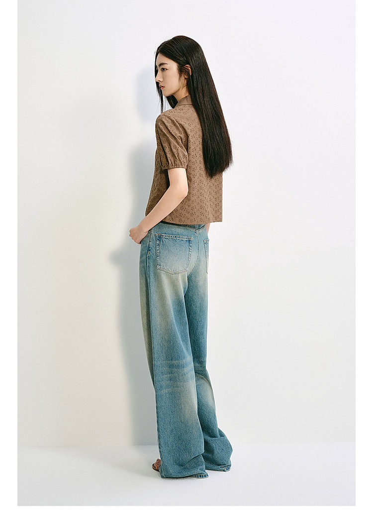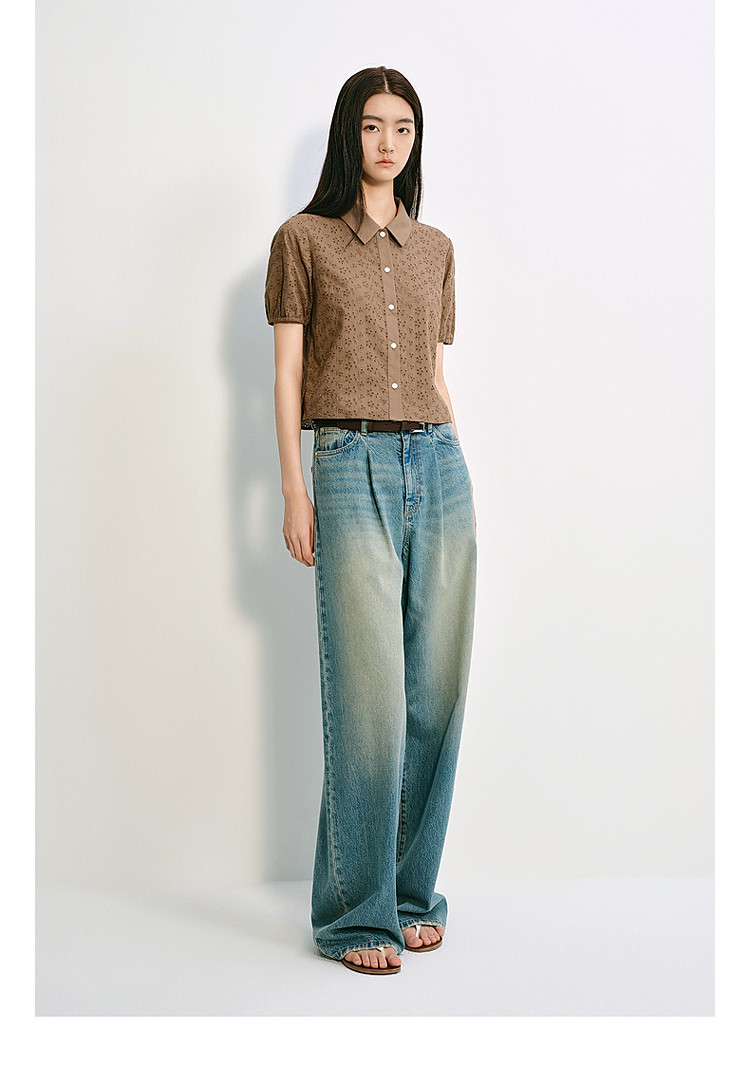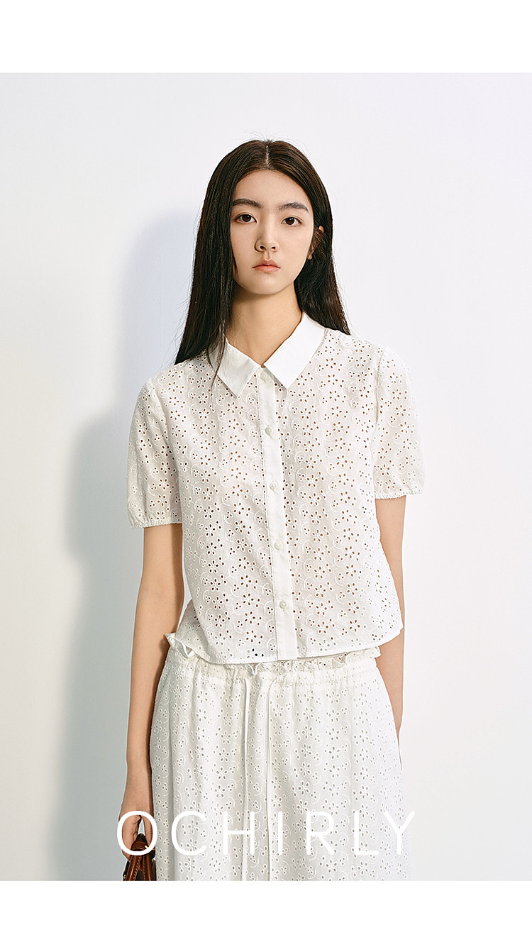 限定系列OCH.夏装 上衣刺绣镂空透气100%棉短袖衬衫女 341455