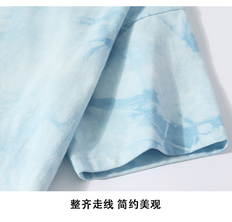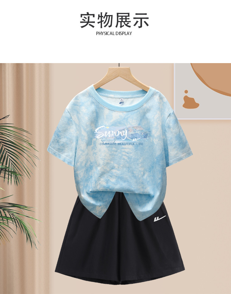 商品名称:【女装】夏季运动套装女扎染短款T恤+斜纹棉三分裤纯棉两件套 930195