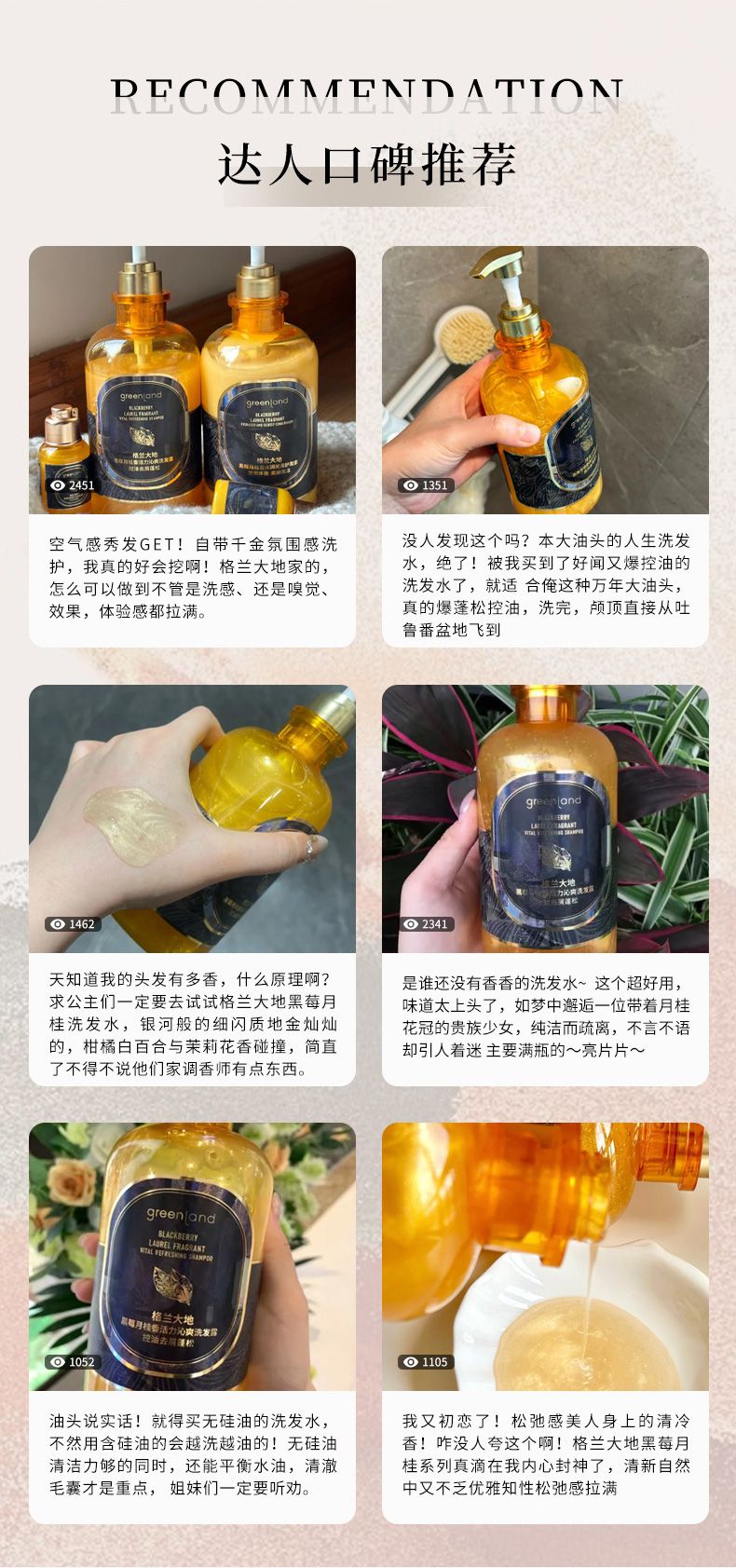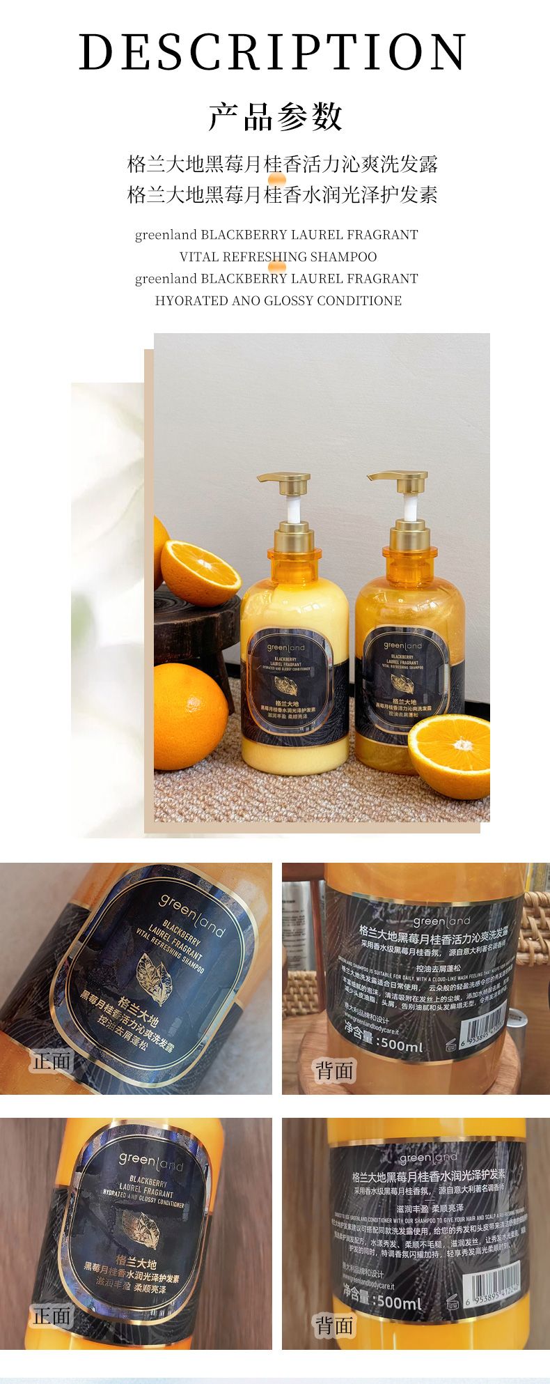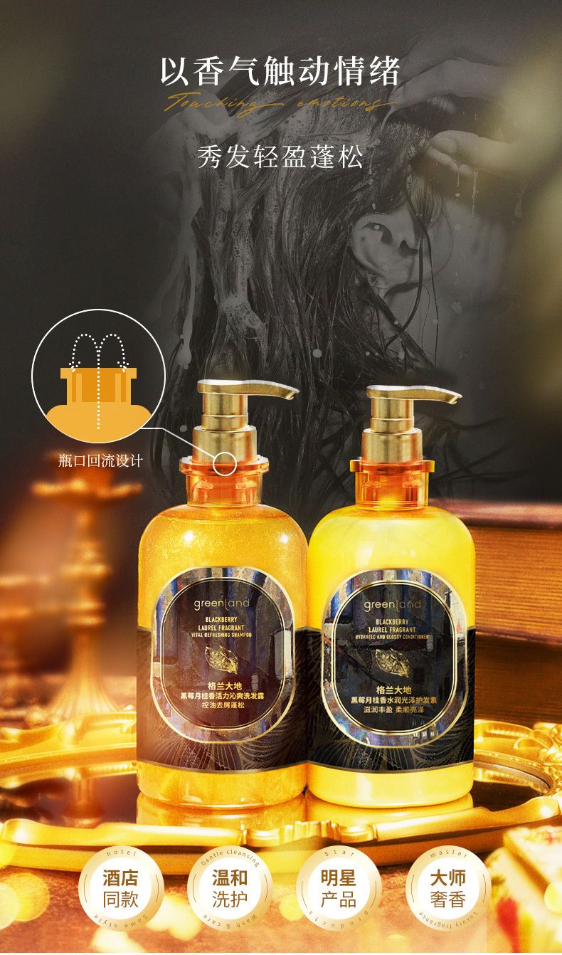 商品名称:Greenladn/格兰大地黄金液黑莓月桂香氛洗发水护发素套装