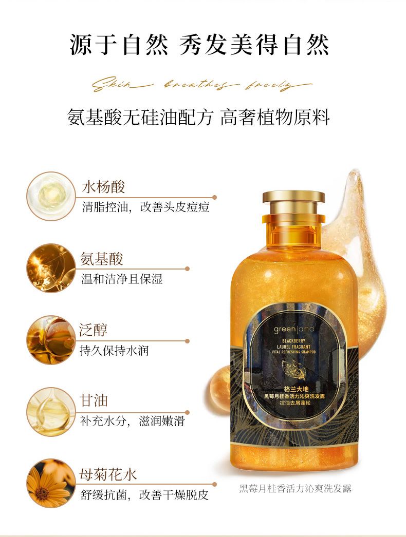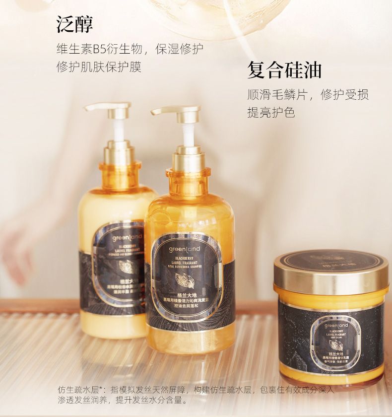 Greenladn/格兰大地黄金液黑莓月桂香氛洗发水护发素套装