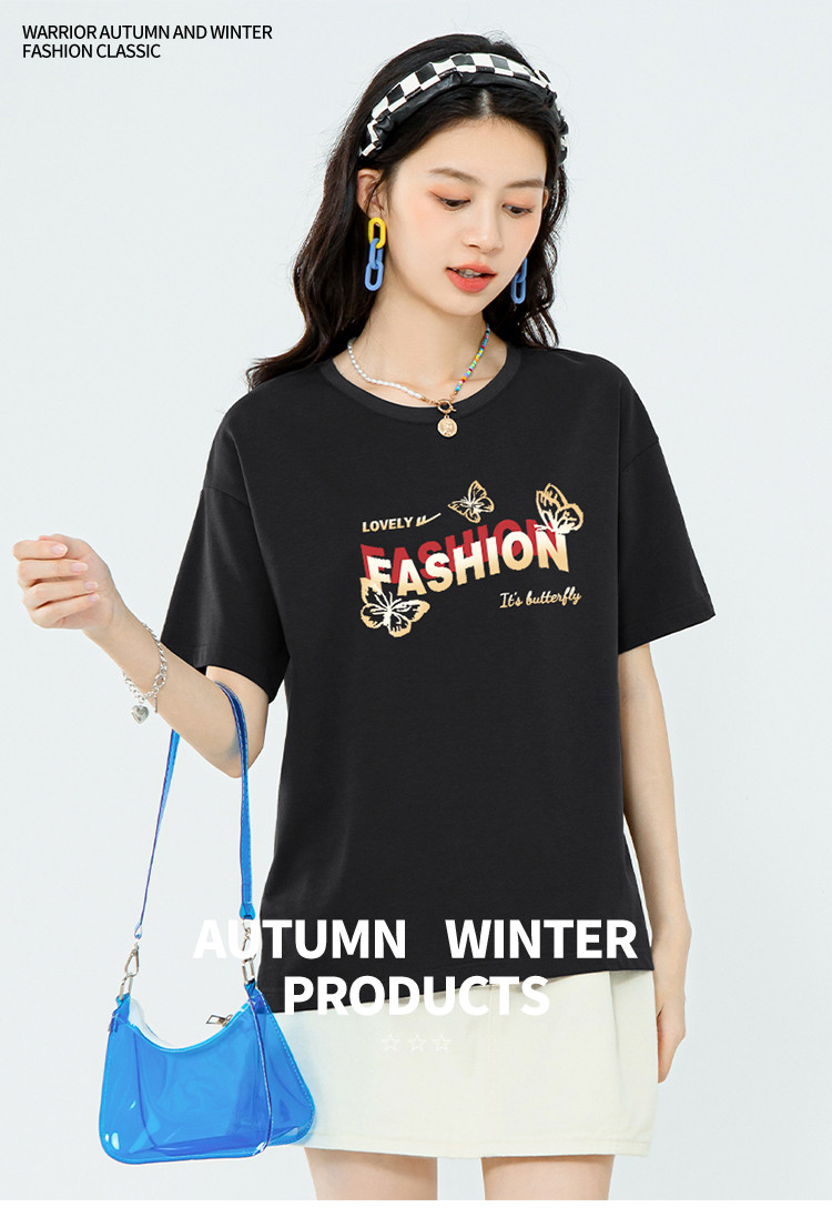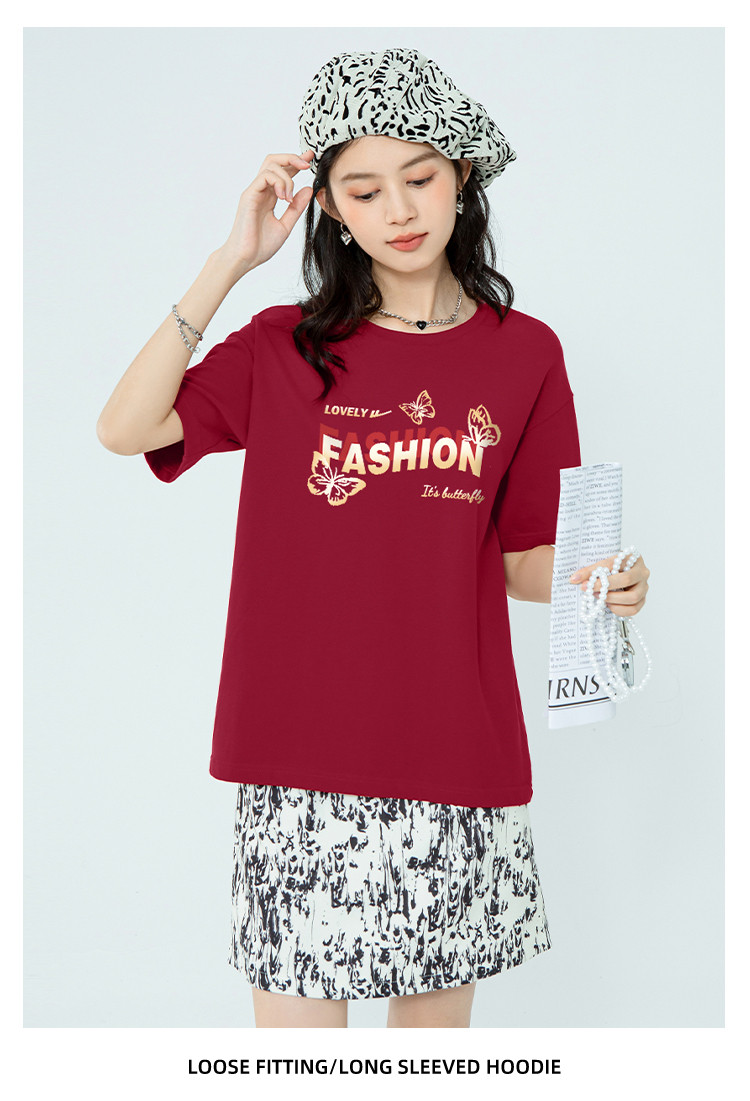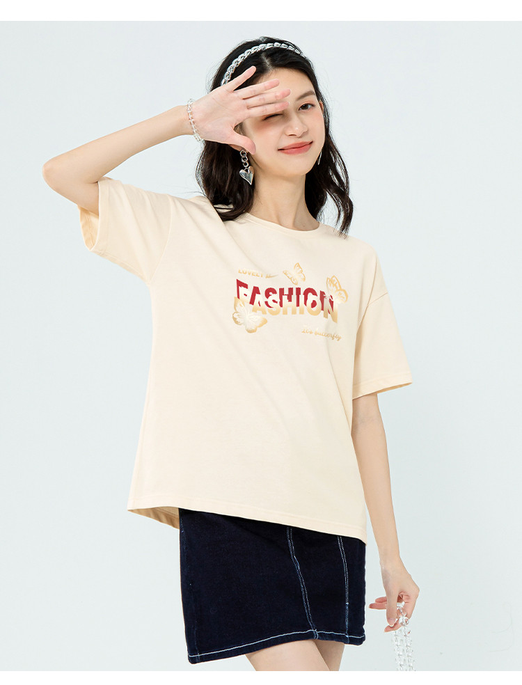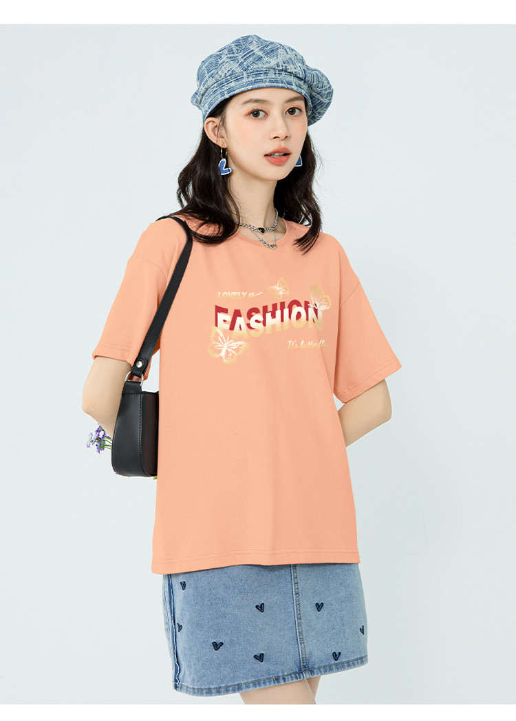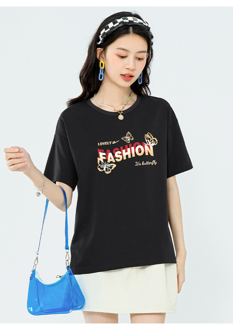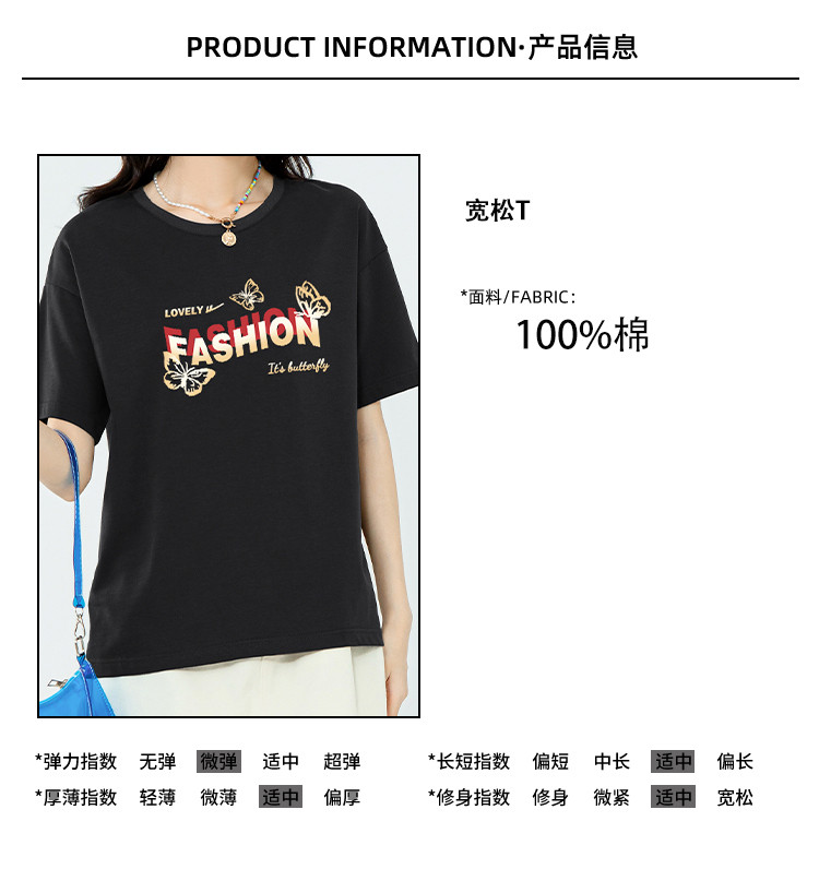 【女装100%棉】夏季女式纯棉短袖T恤宽松显瘦运动上衣 358675