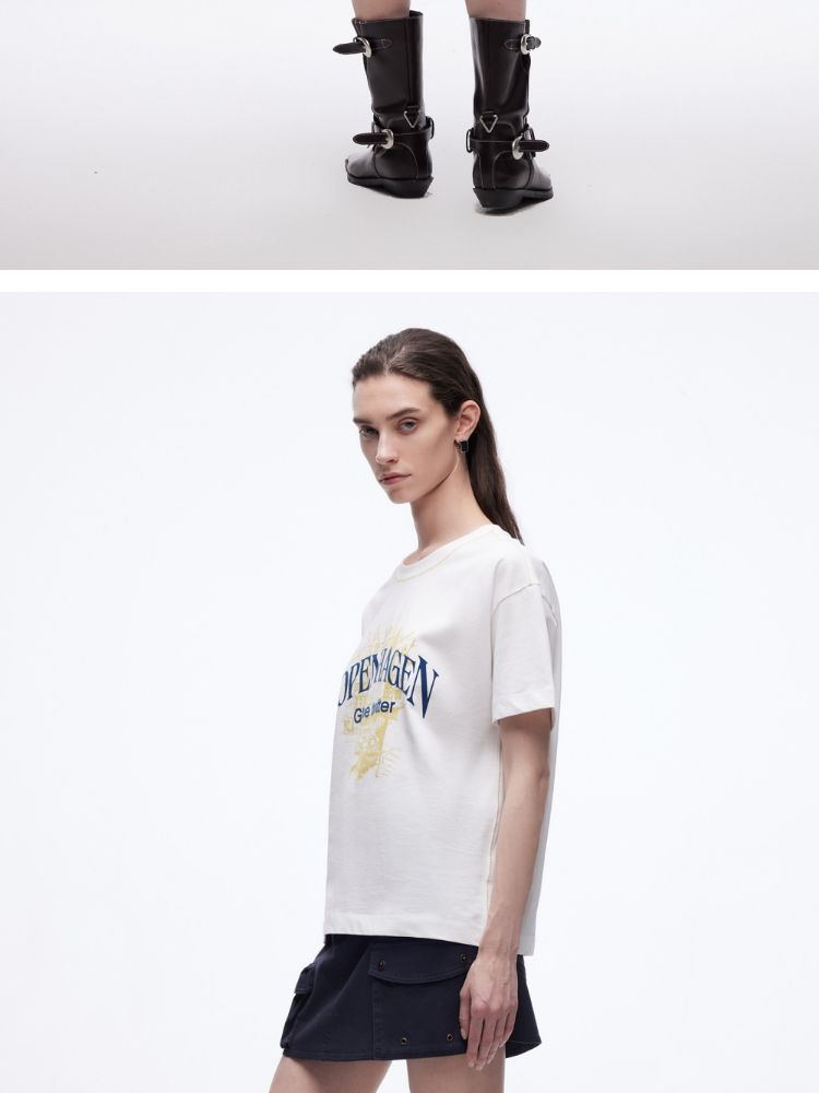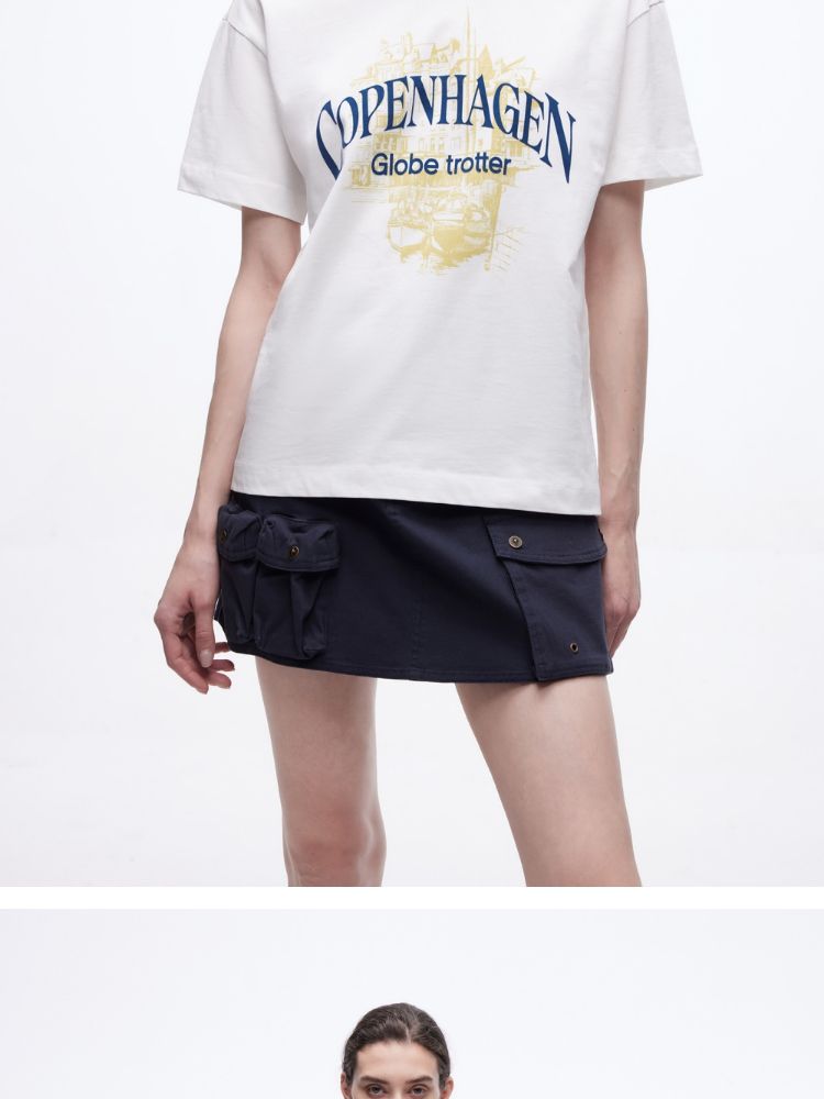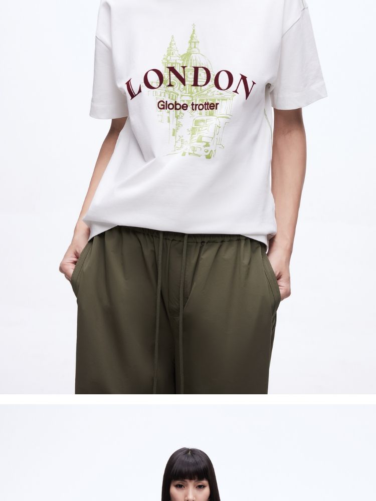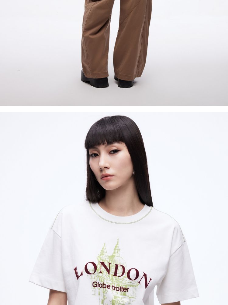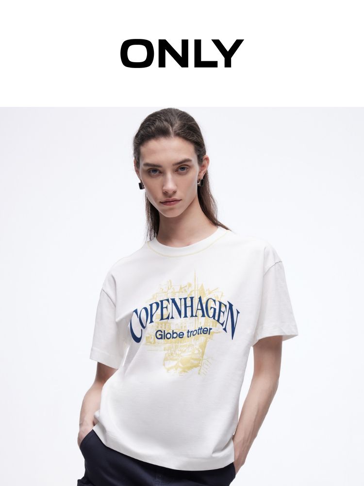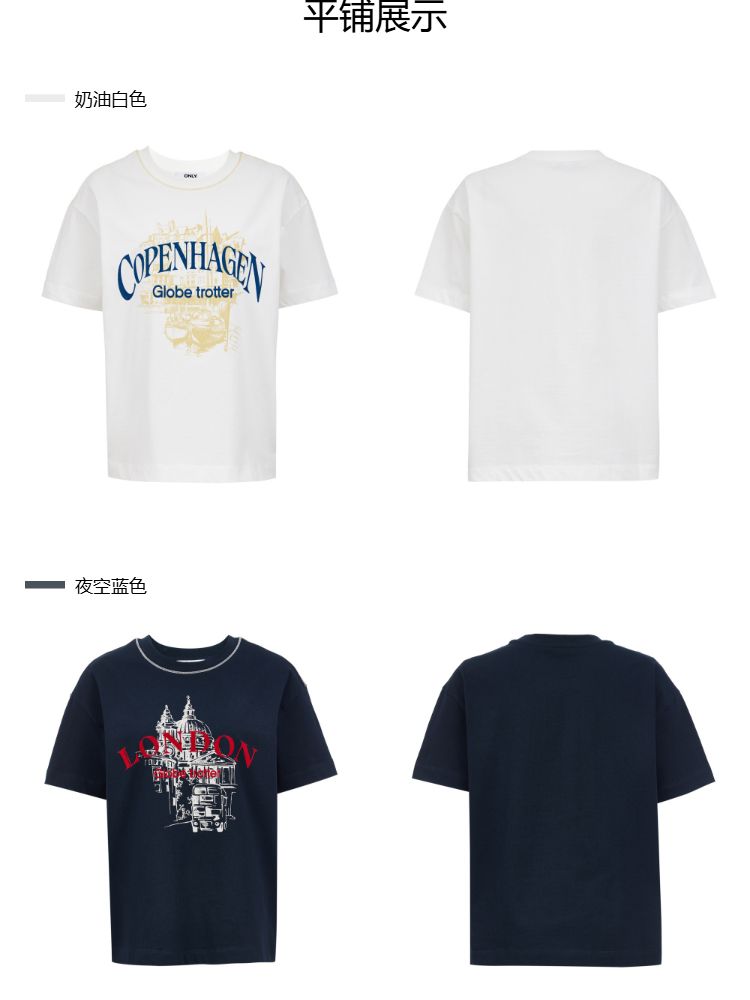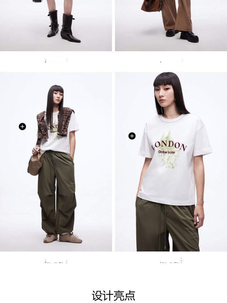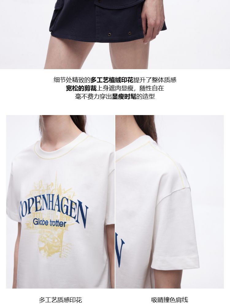 商品名称:【吸睛撞色肩线】2025夏季纯棉时髦慵懒宽松纯棉印花短袖T恤女 866650