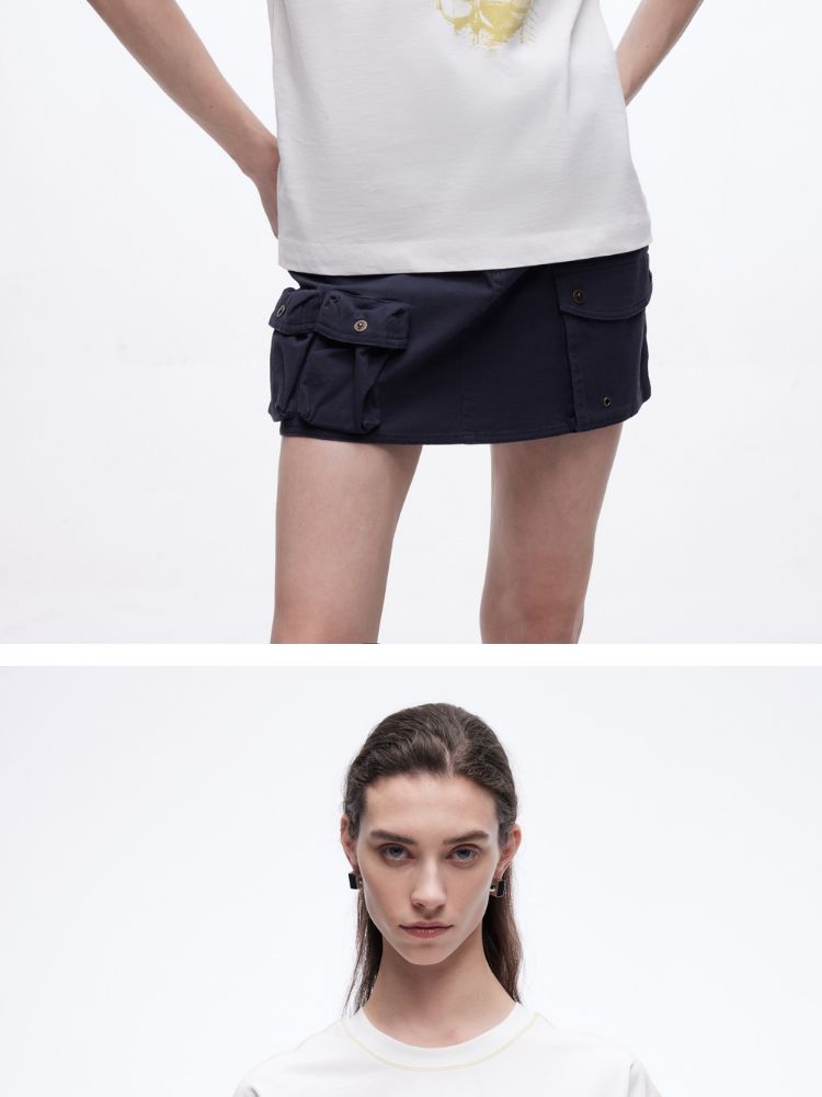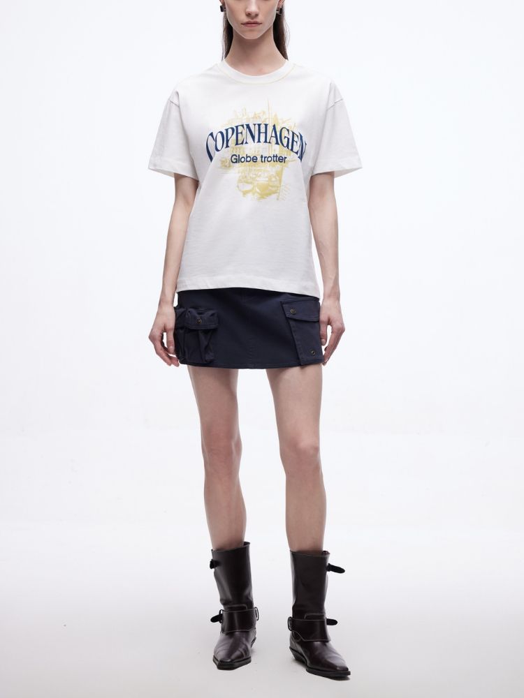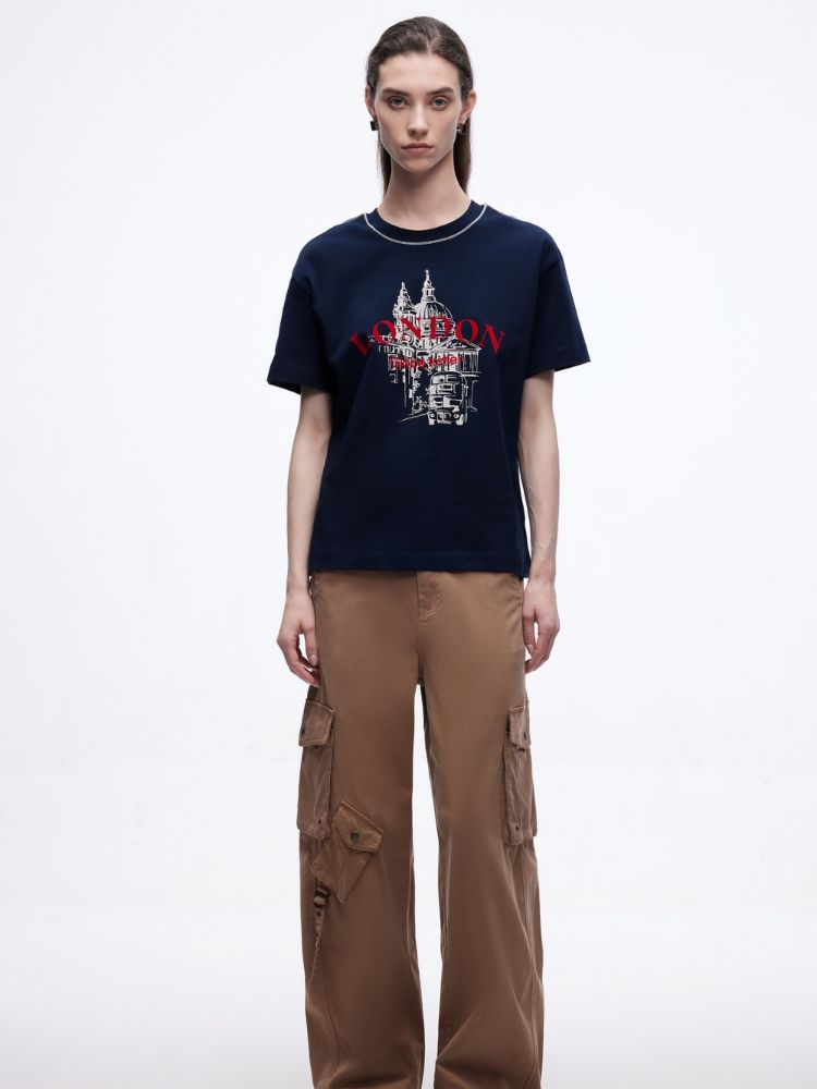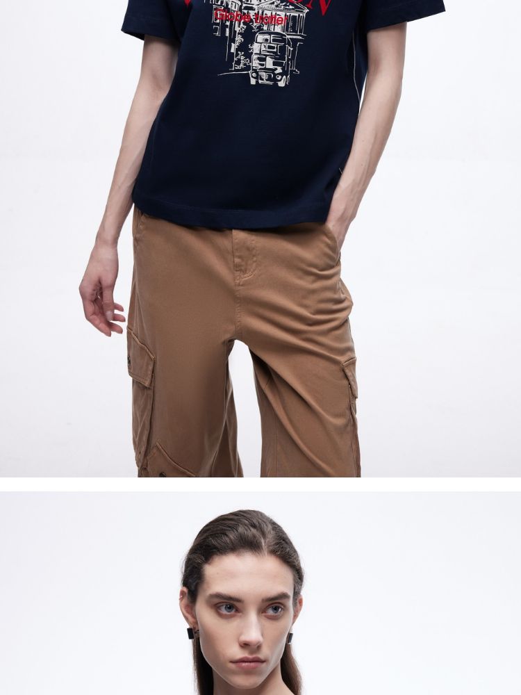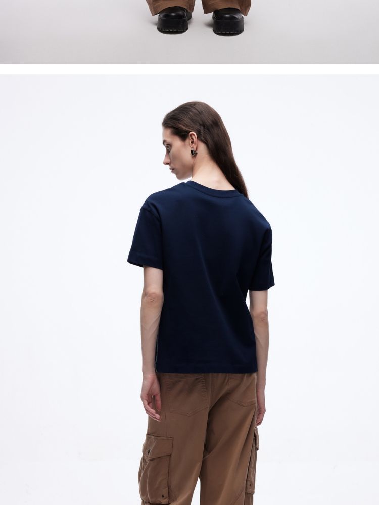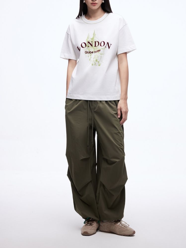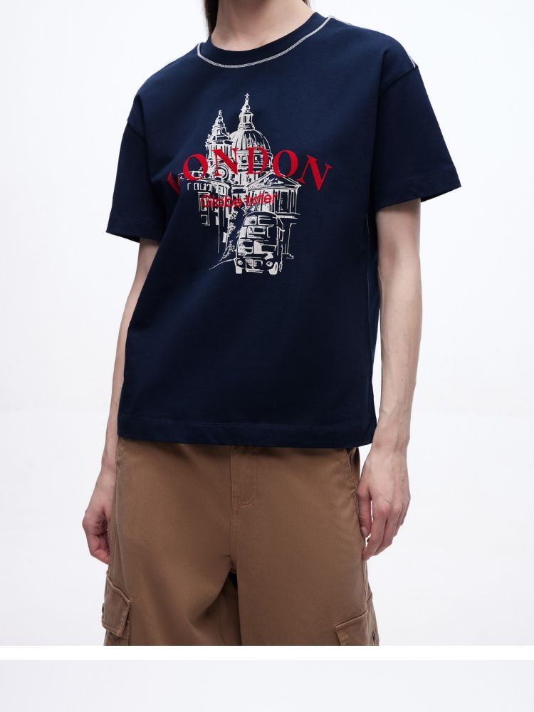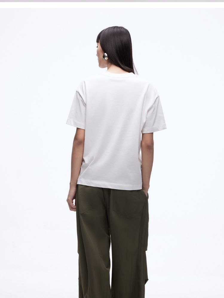 商品名称:【吸睛撞色肩线】2025夏季纯棉时髦慵懒宽松纯棉印花短袖T恤女 866650