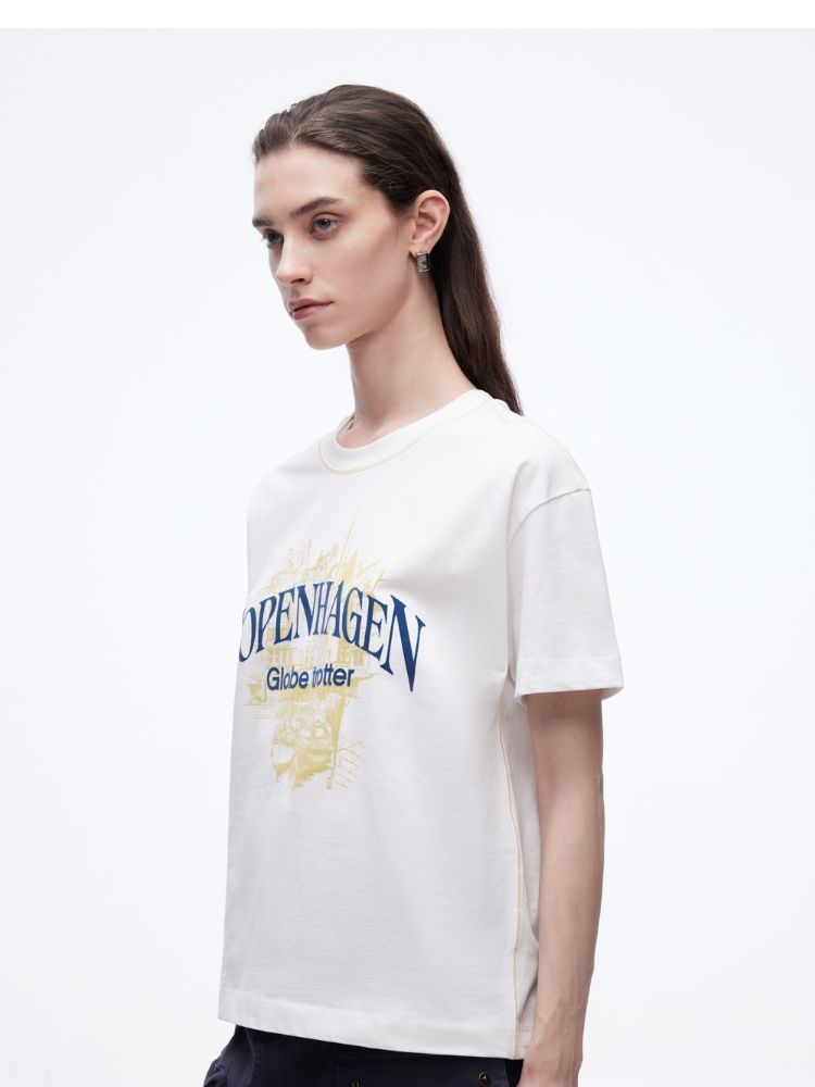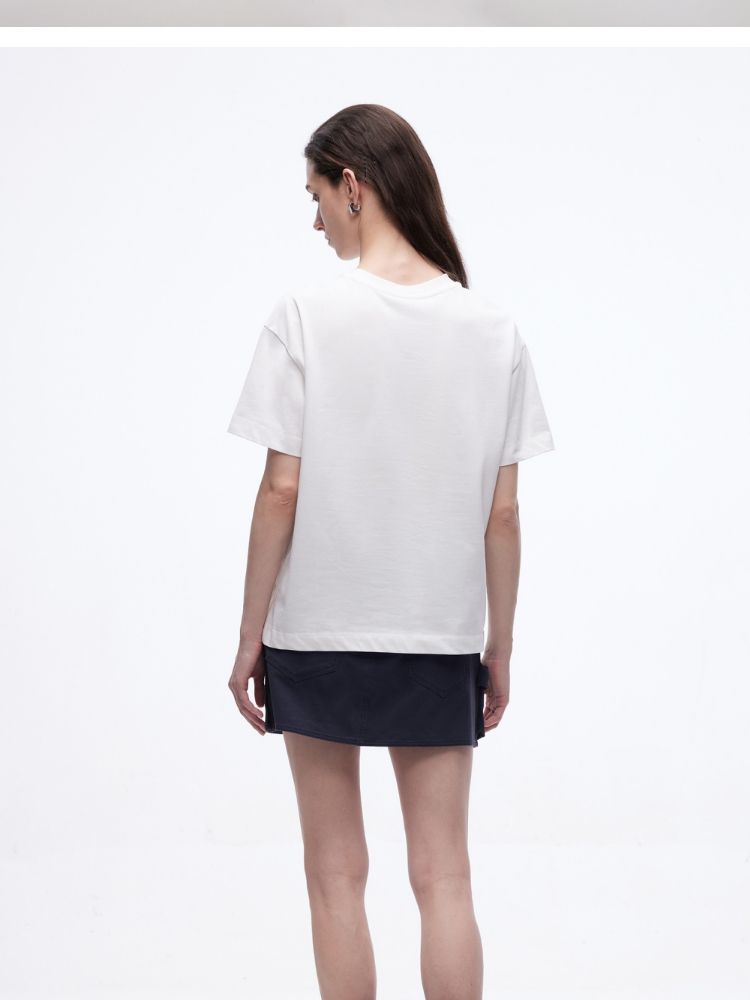 【吸睛撞色肩线】2025夏季纯棉时髦慵懒宽松纯棉印花短袖T恤女 866650