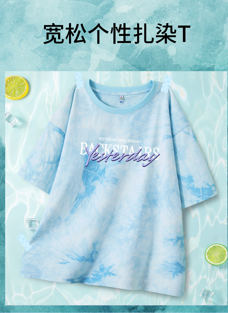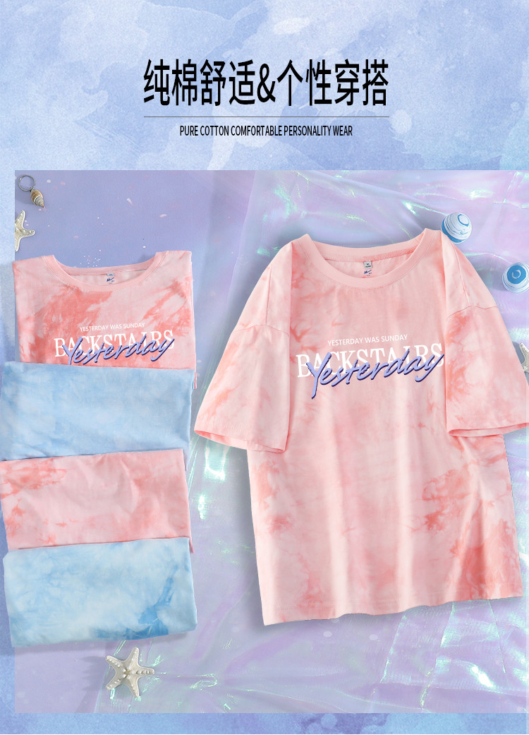 【女装】夏季扎染女式短袖ins纯棉宽松小众运动夏装 743699