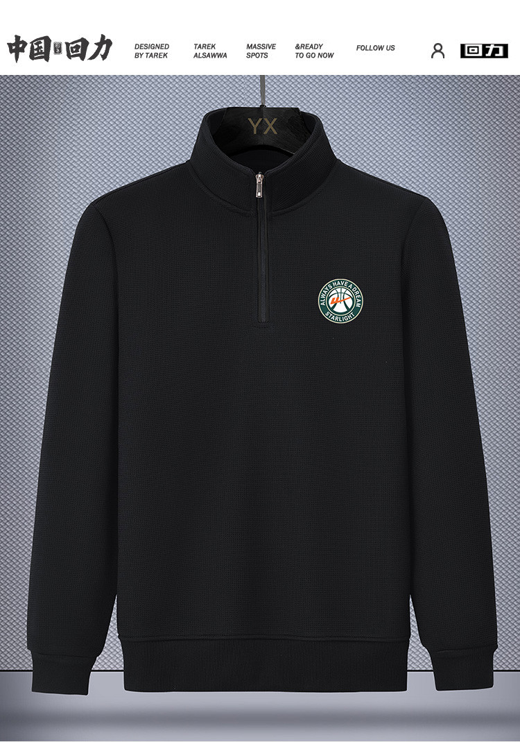 秋季运动长袖T恤上衣外套男士日常通勤休闲宽松舒适立领拉链卫衣 259155
