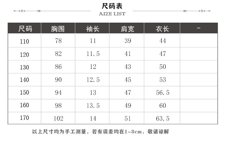 尺码 衣长(cm) 肩宽(cm) 身高(cm) 袖长(cm) 适合年龄 胸围(cm) 号型
