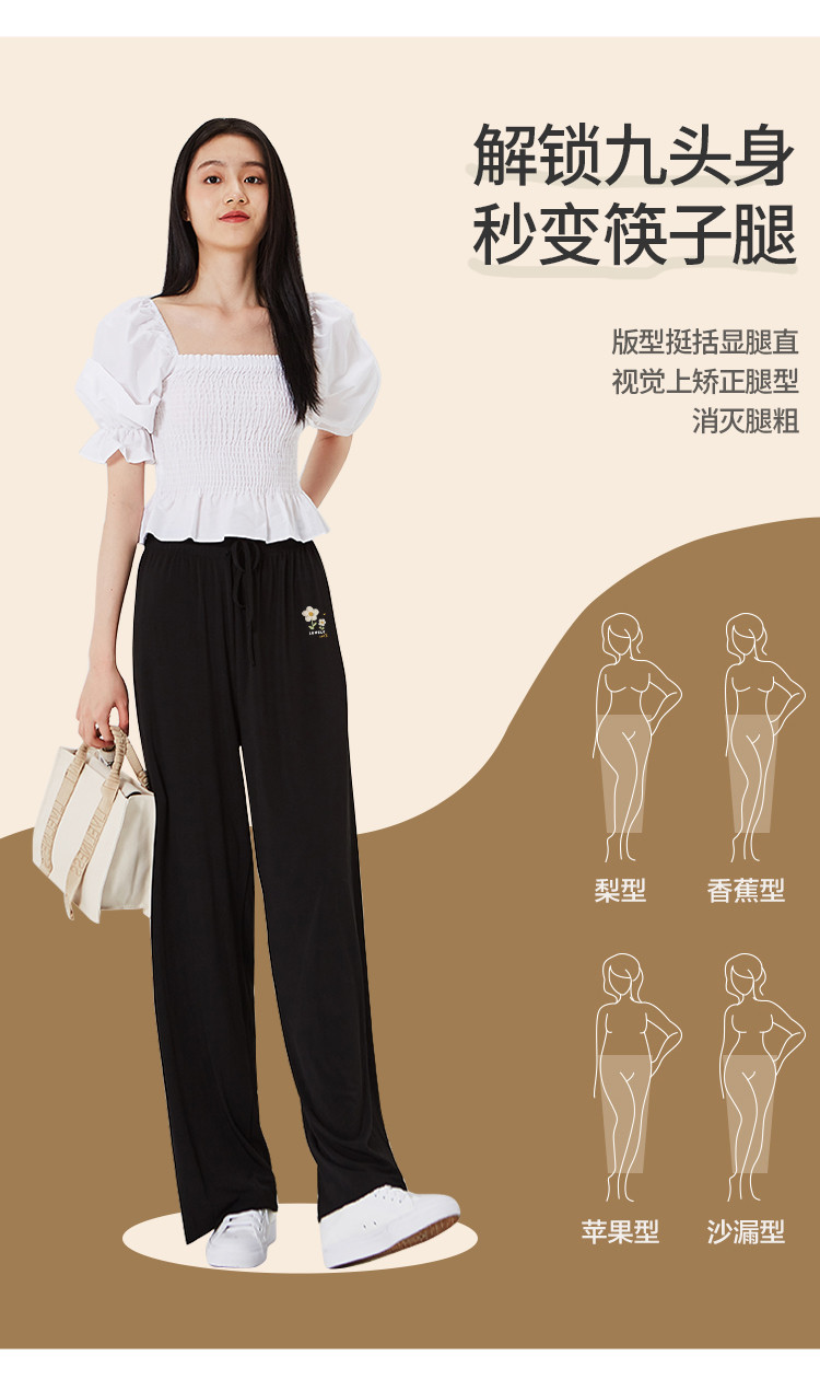 商品名称:【女装】夏季薄款冰感阔腿长裤直筒运动休闲垂感拖地长裤 891667