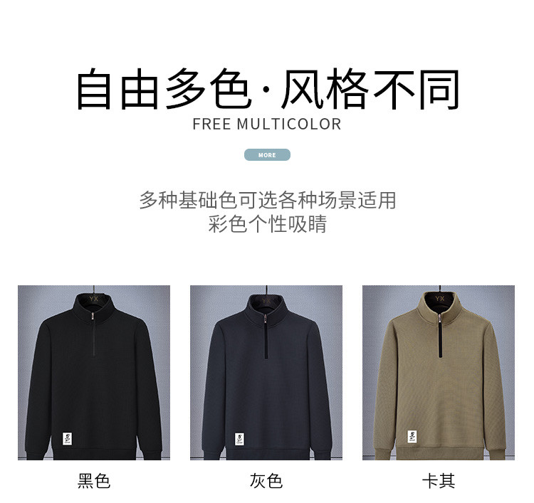 商品名称:【半开衫】春秋款纯色拉链卫衣男长袖套头打底衫男式立领上衣服男 242771