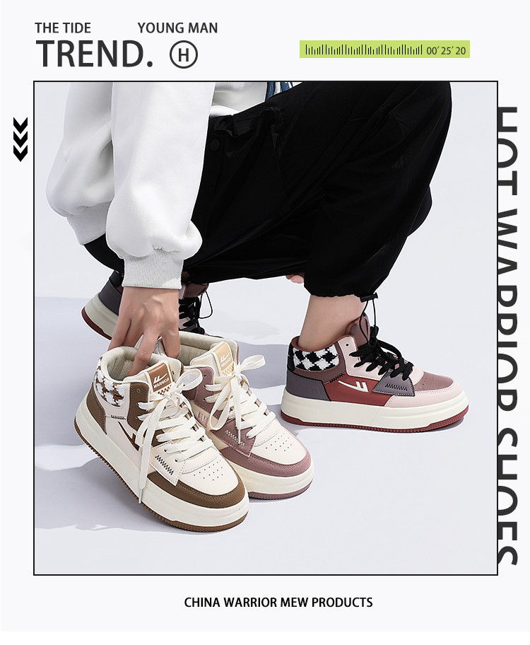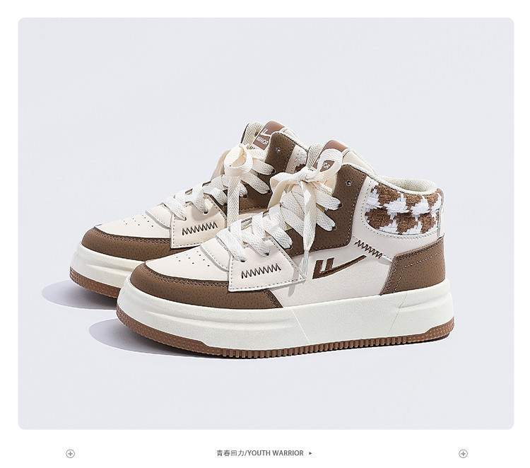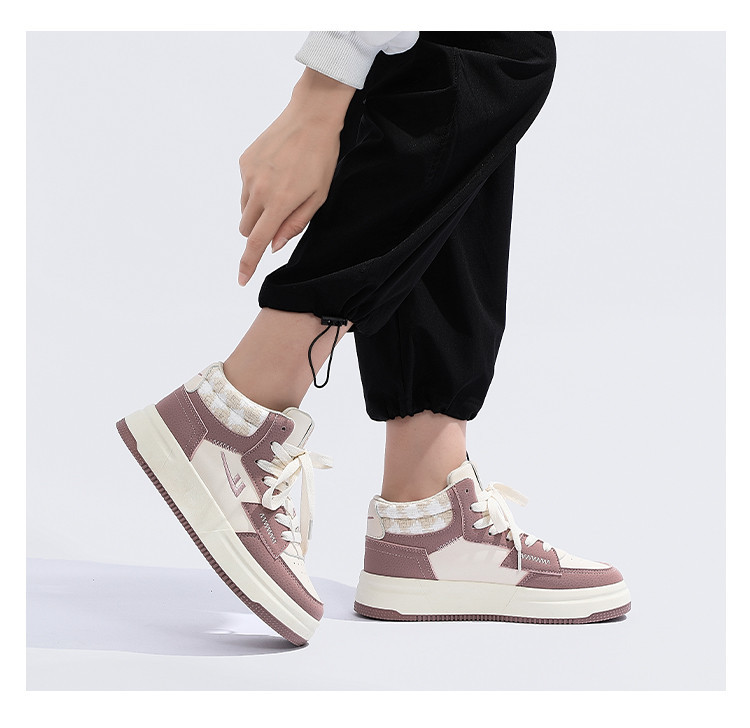 商品名称:拼色百搭板鞋女25春季款女鞋舒适高帮运动休闲鞋女透气平底鞋 234196