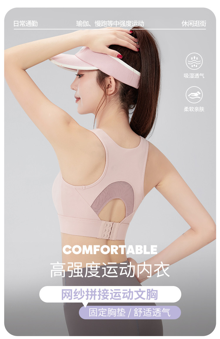 商品名称:运动内衣女舒适跑步瑜伽健身美背背心Bra胸垫一体式防下垂文胸 582227
