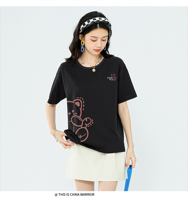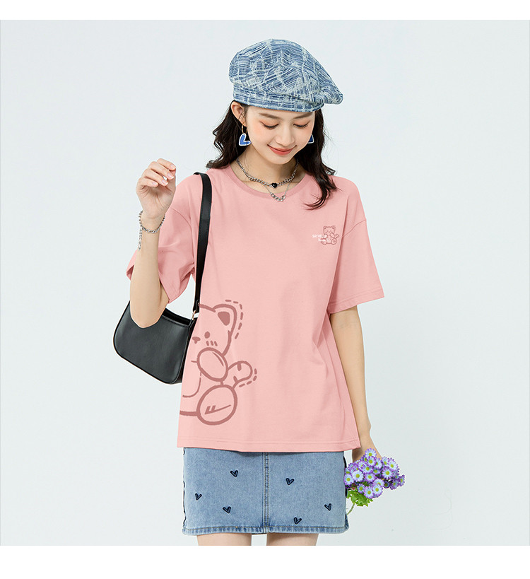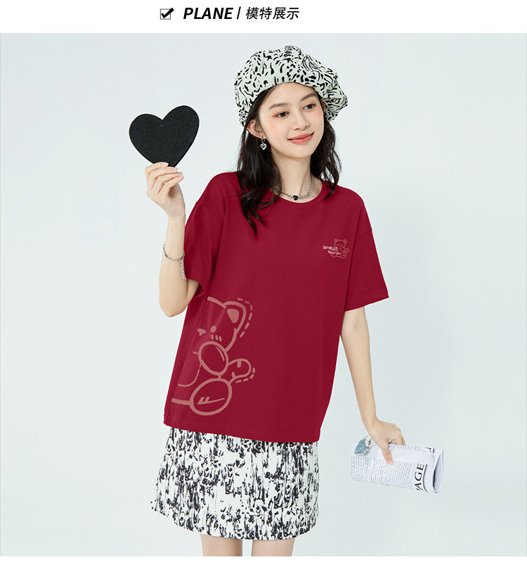 【女装100%棉】女式夏季纯棉短袖T恤舒适宽松休闲上衣女 397395
