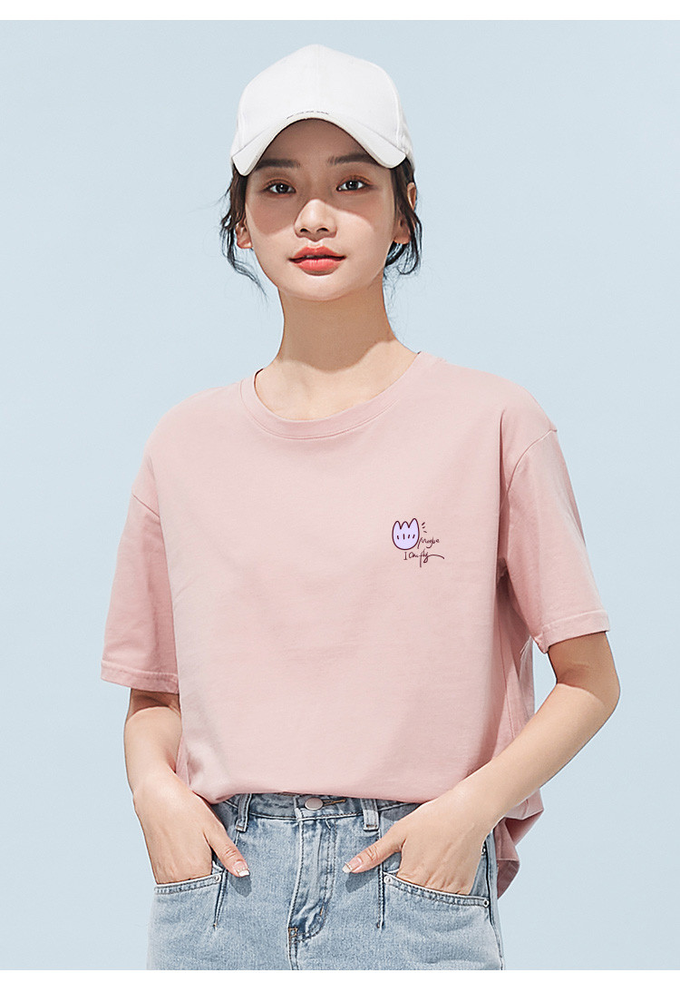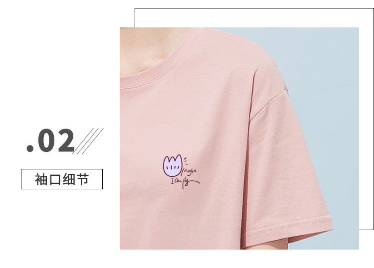 米子旗夏季款圆领女式T恤卡通印花修身短袖上衣休闲 092314