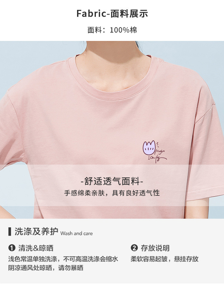 商品名称:米子旗夏季时尚潮流简约印花上衣侧边开叉宽松短袖大码T恤女 950490