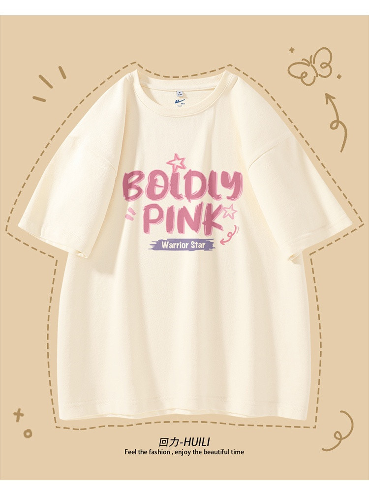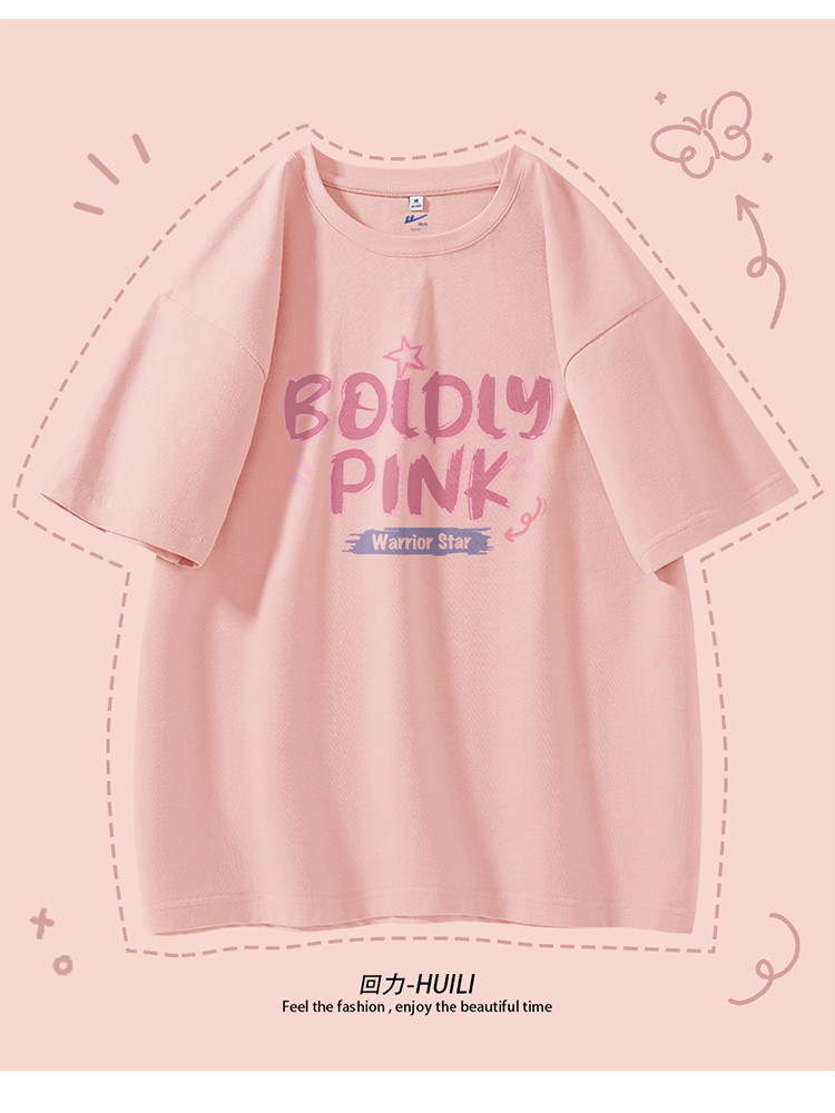 【女装100%棉】女式夏季纯棉短袖T恤舒适宽松休闲上衣女 397395