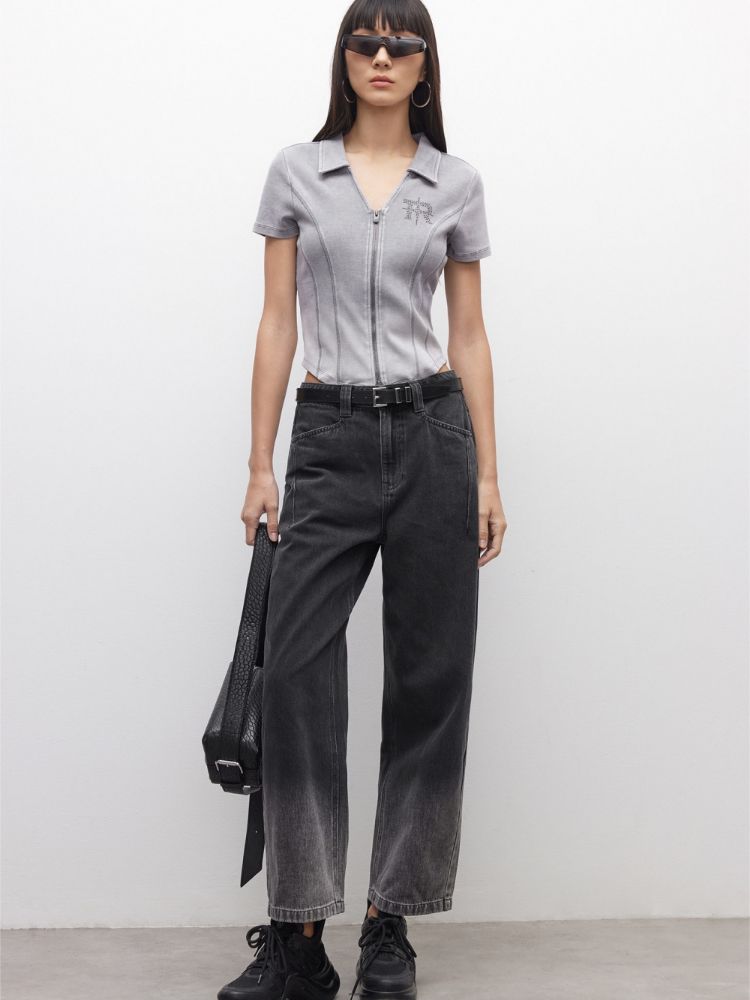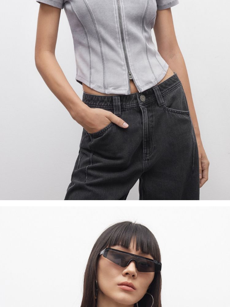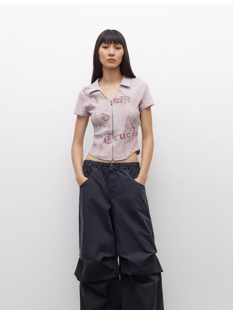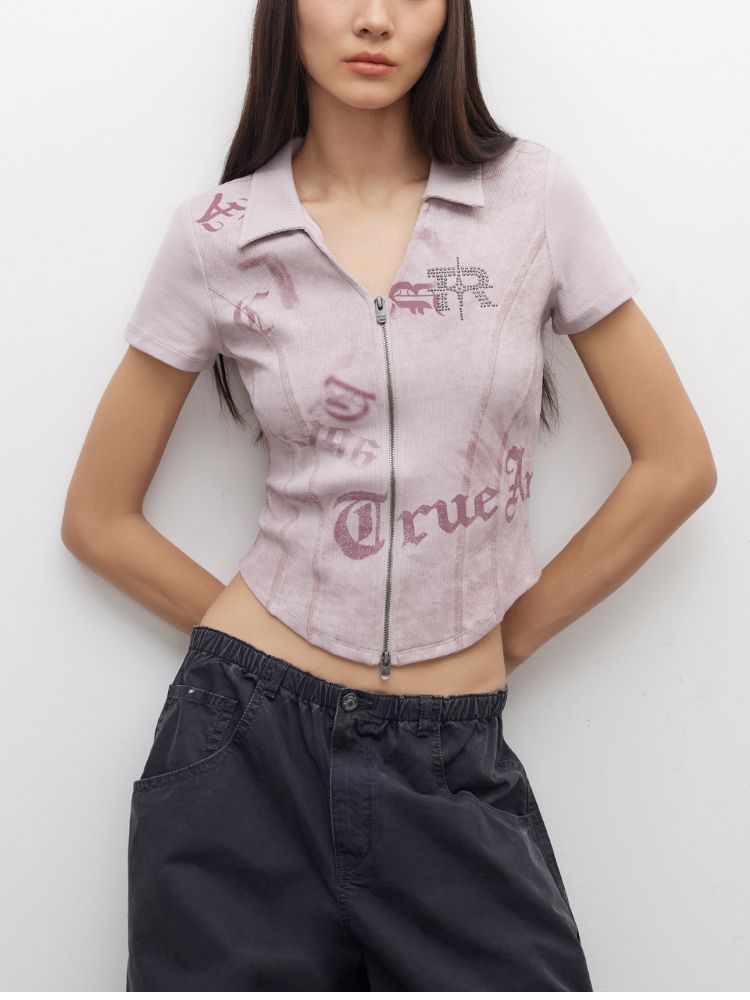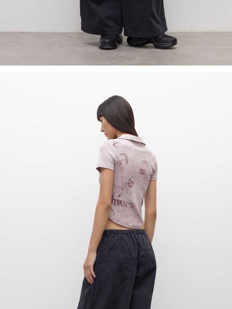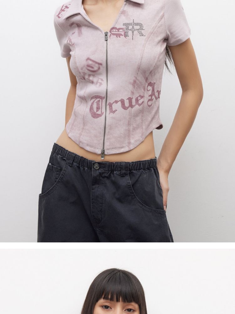【做旧水洗】2025夏季V领显瘦正肩修身短款T恤女 071898