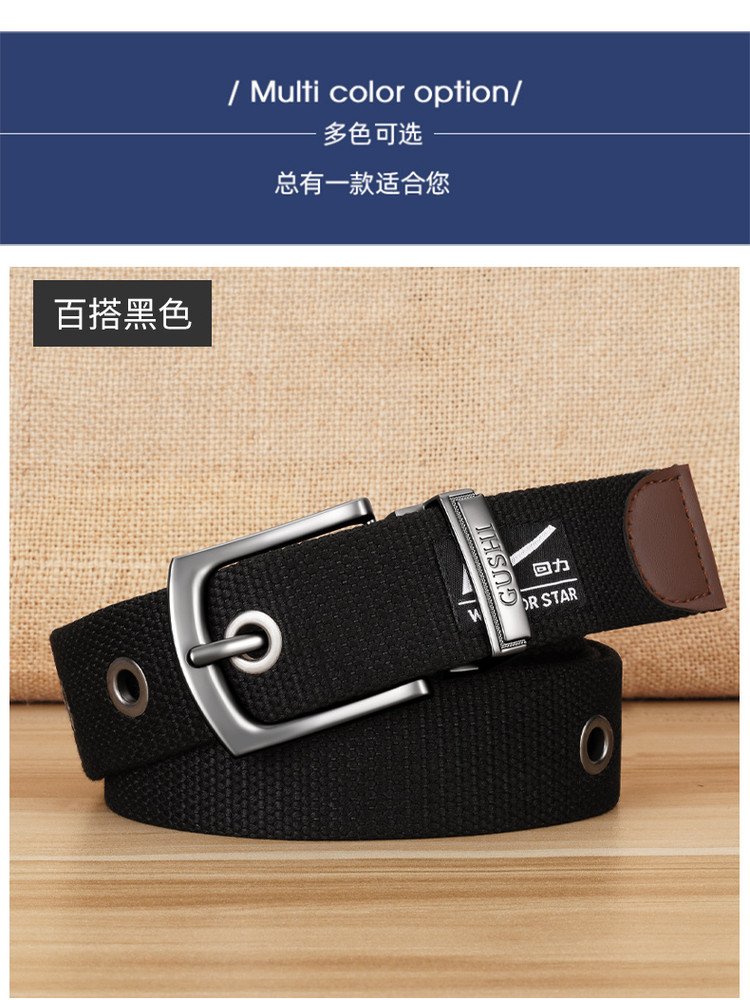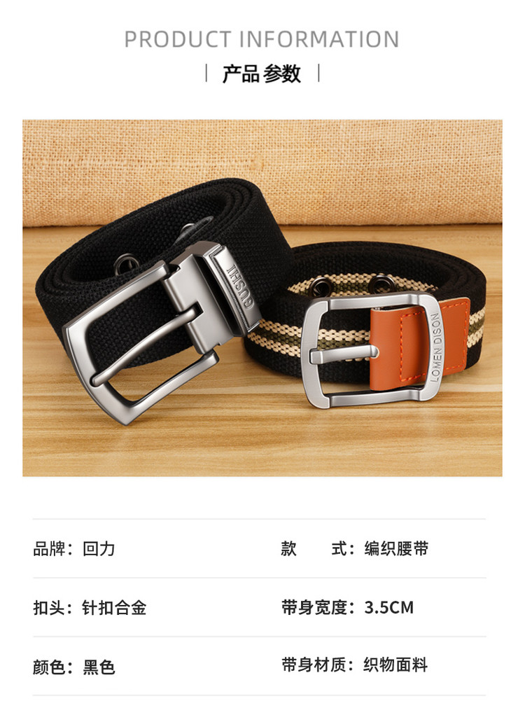 商品名称:帆布针扣腰带男款编织皮带女士新款休闲百搭年轻人裤带牛仔裤 780873
