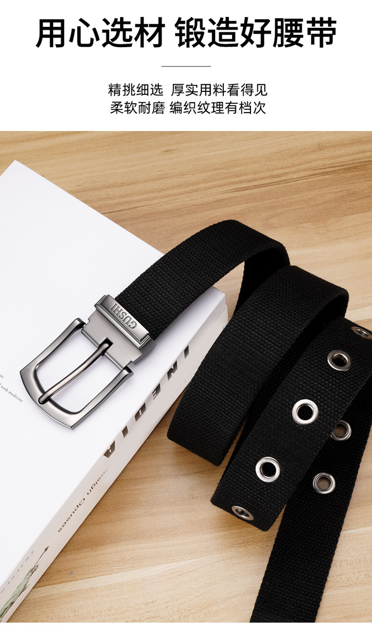 帆布针扣腰带男款编织皮带女士新款休闲百搭年轻人裤带牛仔裤 780873