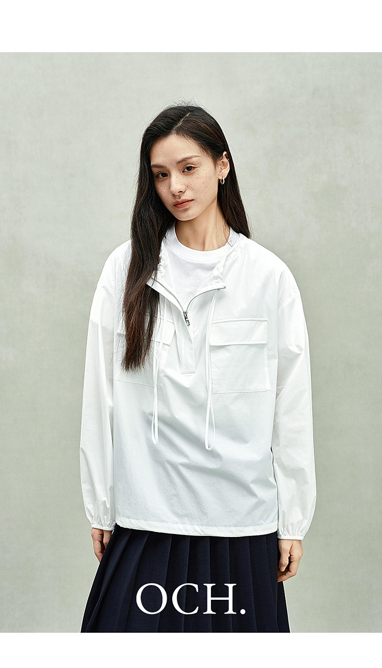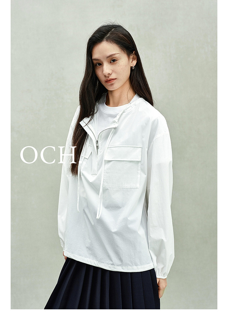 限定系列OCH.春装 抽绳白衬衣休闲上衣宽松套头衬衫女 387215