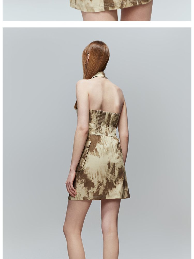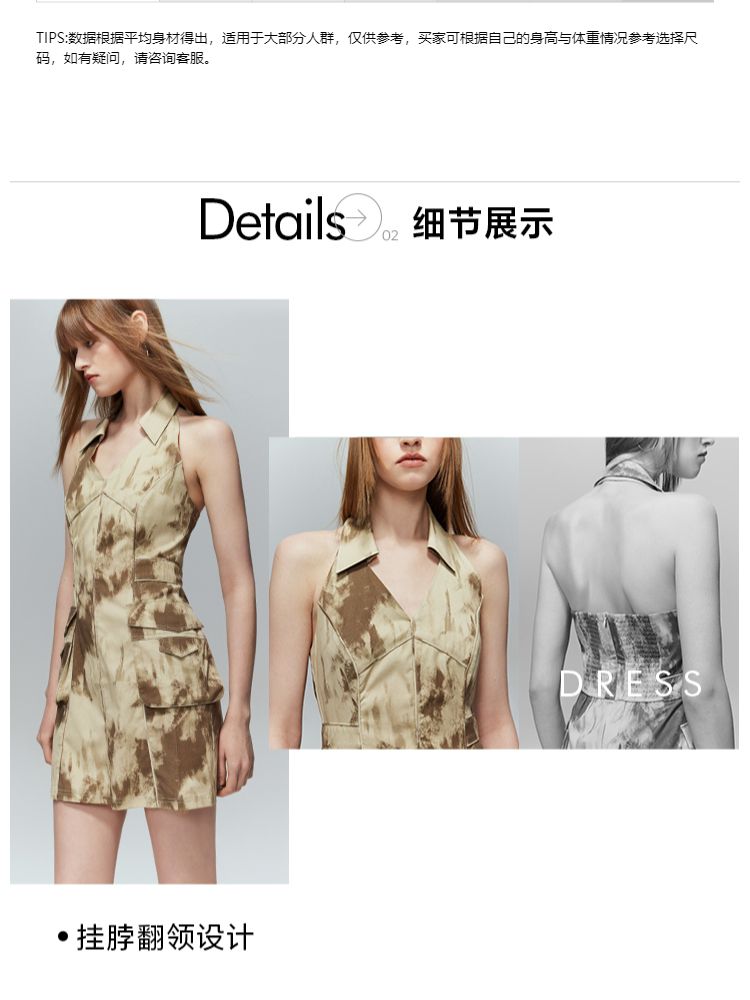 商品名称:【修身百搭】夏季挂脖翻领修身露背短裙连衣裙 984410
