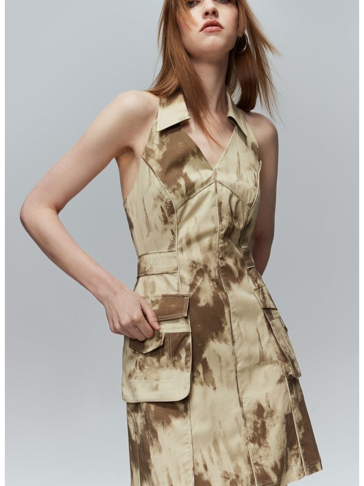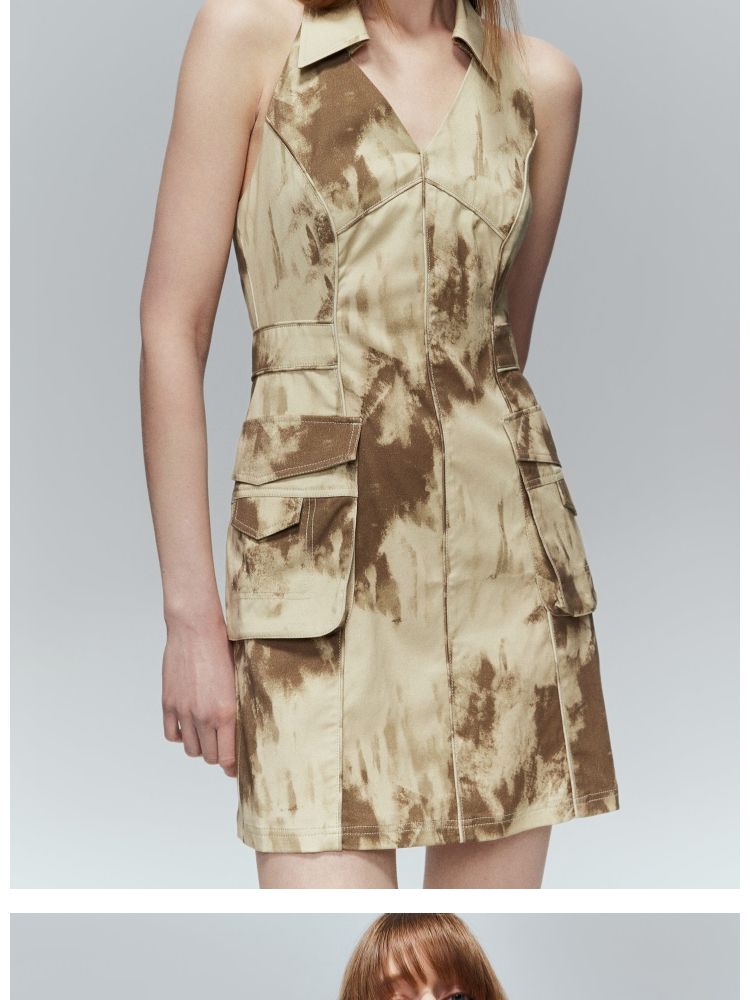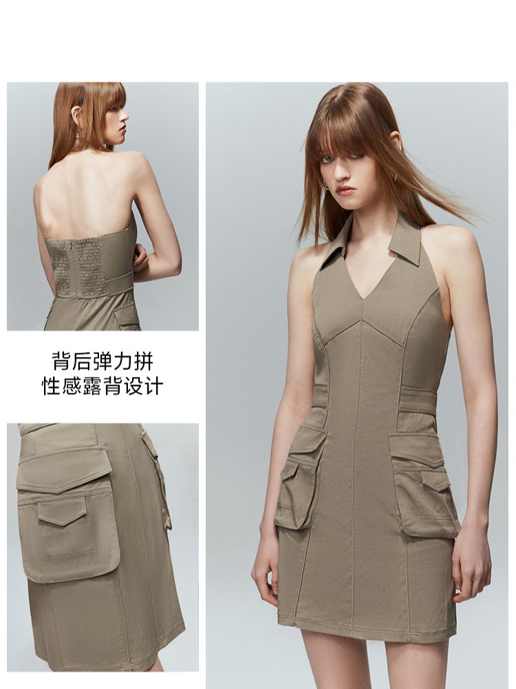 【修身百搭】夏季挂脖翻领修身露背短裙连衣裙 984410