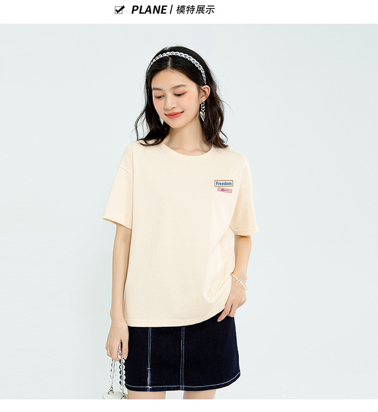 【女装100%棉】女式夏季纯棉短袖T恤舒适宽松休闲上衣女 608467