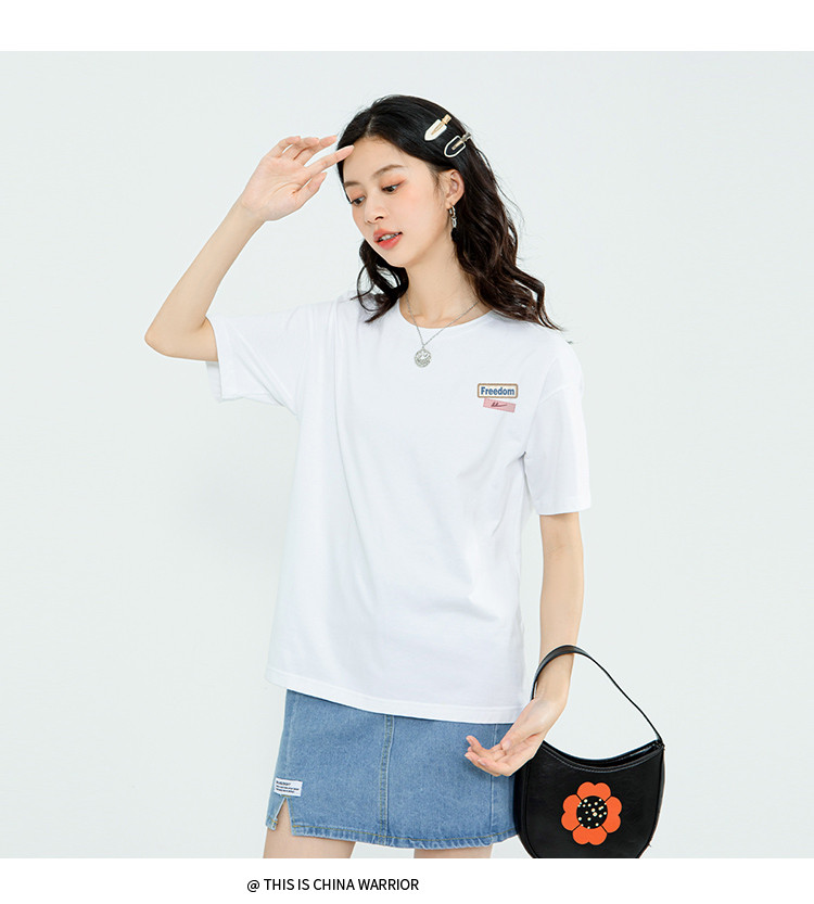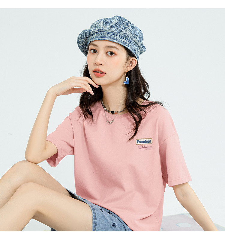 商品名称:【女装100%棉】女式夏季纯棉短袖T恤舒适宽松休闲上衣女 608467