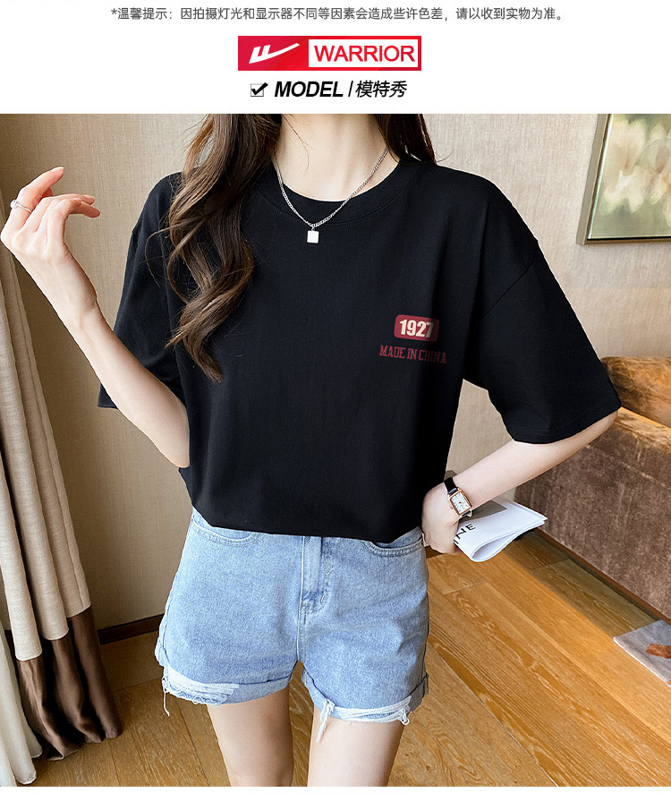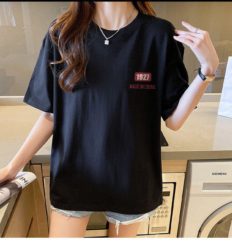 商品名称:纯棉短袖T恤夏季时尚百搭休闲女上衣女宽松t显瘦印花t恤女式潮 009811