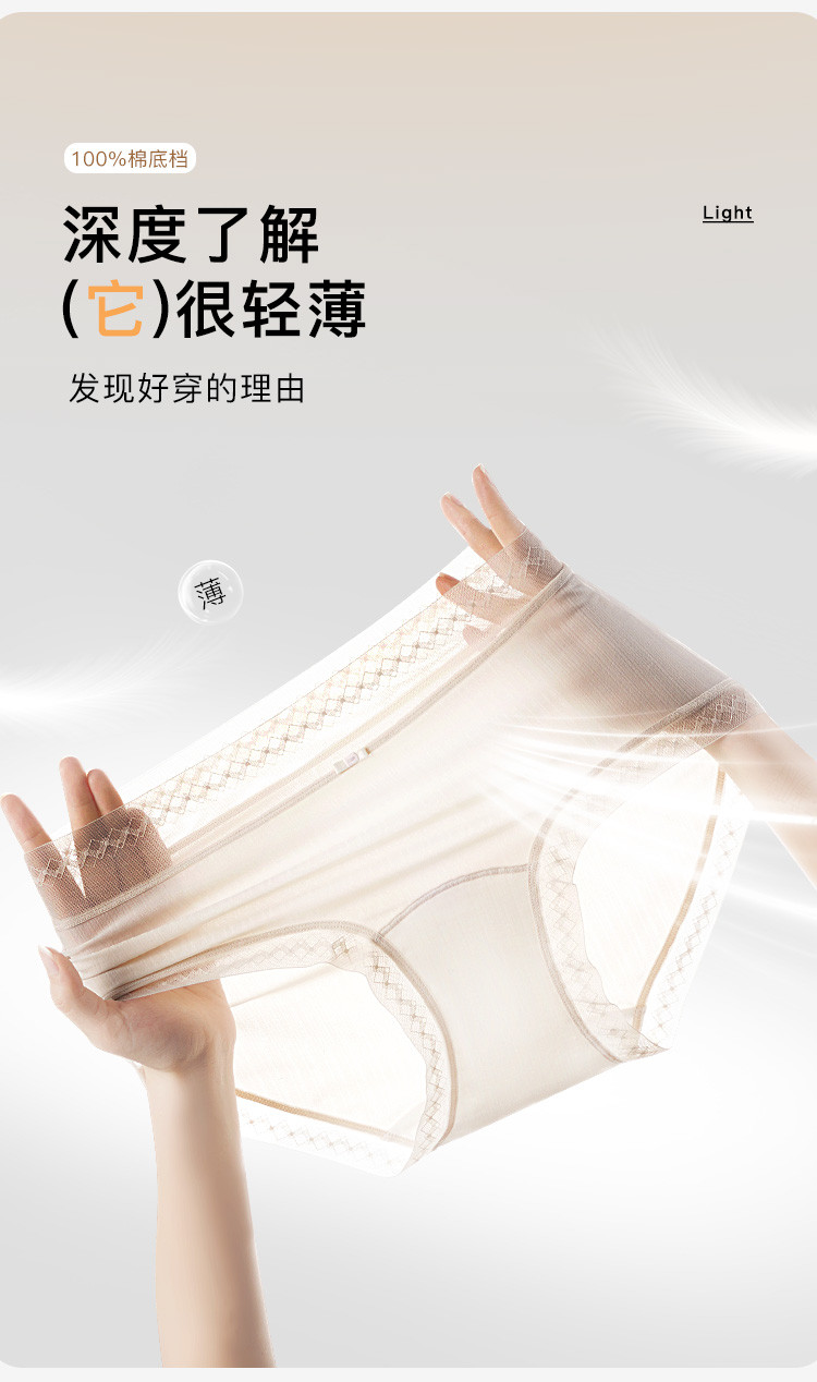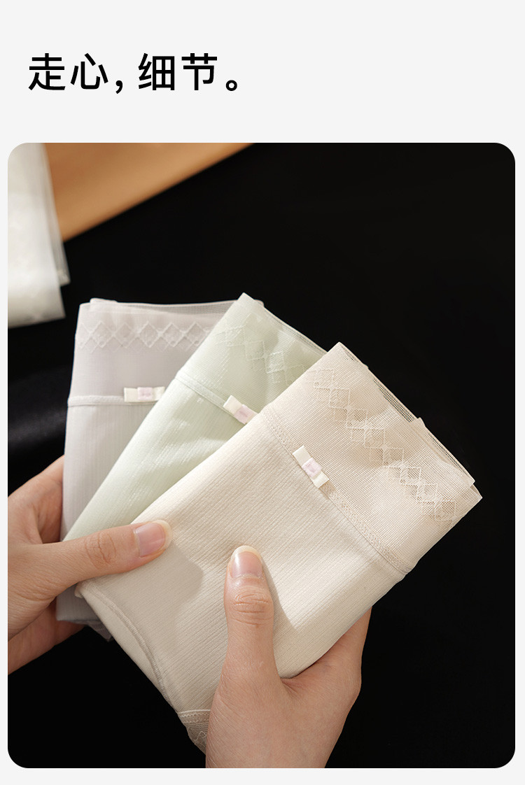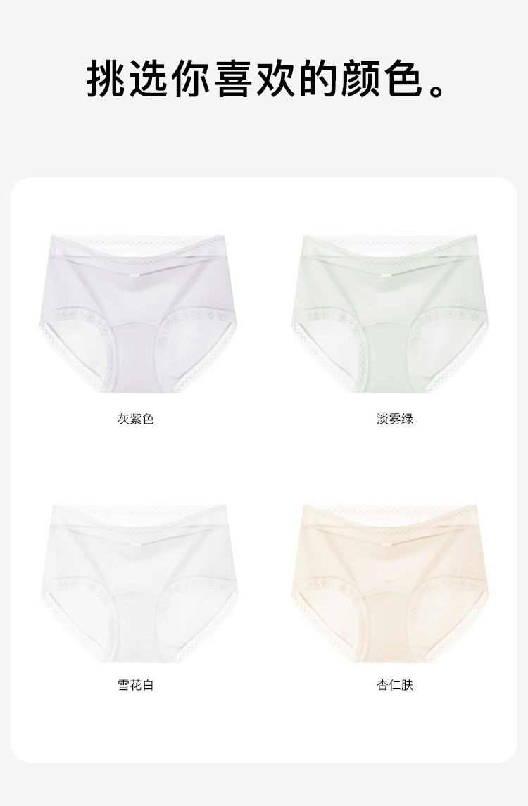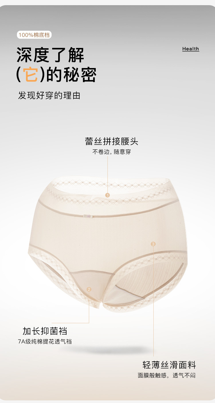 商品名称:【100%纯棉加长裆 7A抑菌】3条装女士内裤轻薄透气三角裤 141387