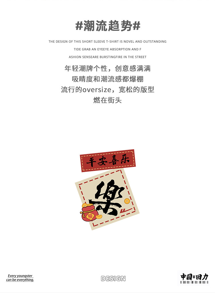 商品名称:【冰爽透气】夏季薄款冰丝网眼短袖男宽松潮牌国潮风平安喜乐T恤 912019