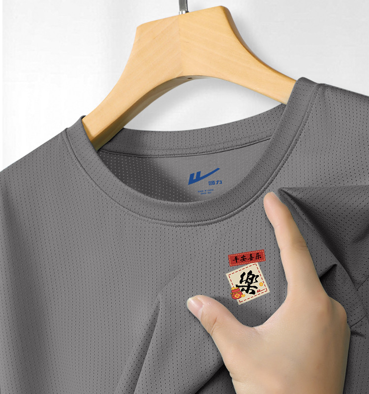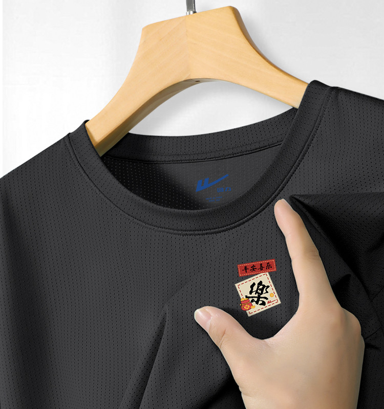 【冰爽透气】夏季薄款冰丝网眼短袖男宽松潮牌国潮风平安喜乐T恤 912019