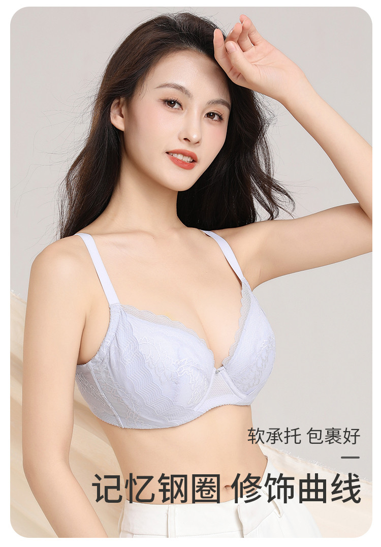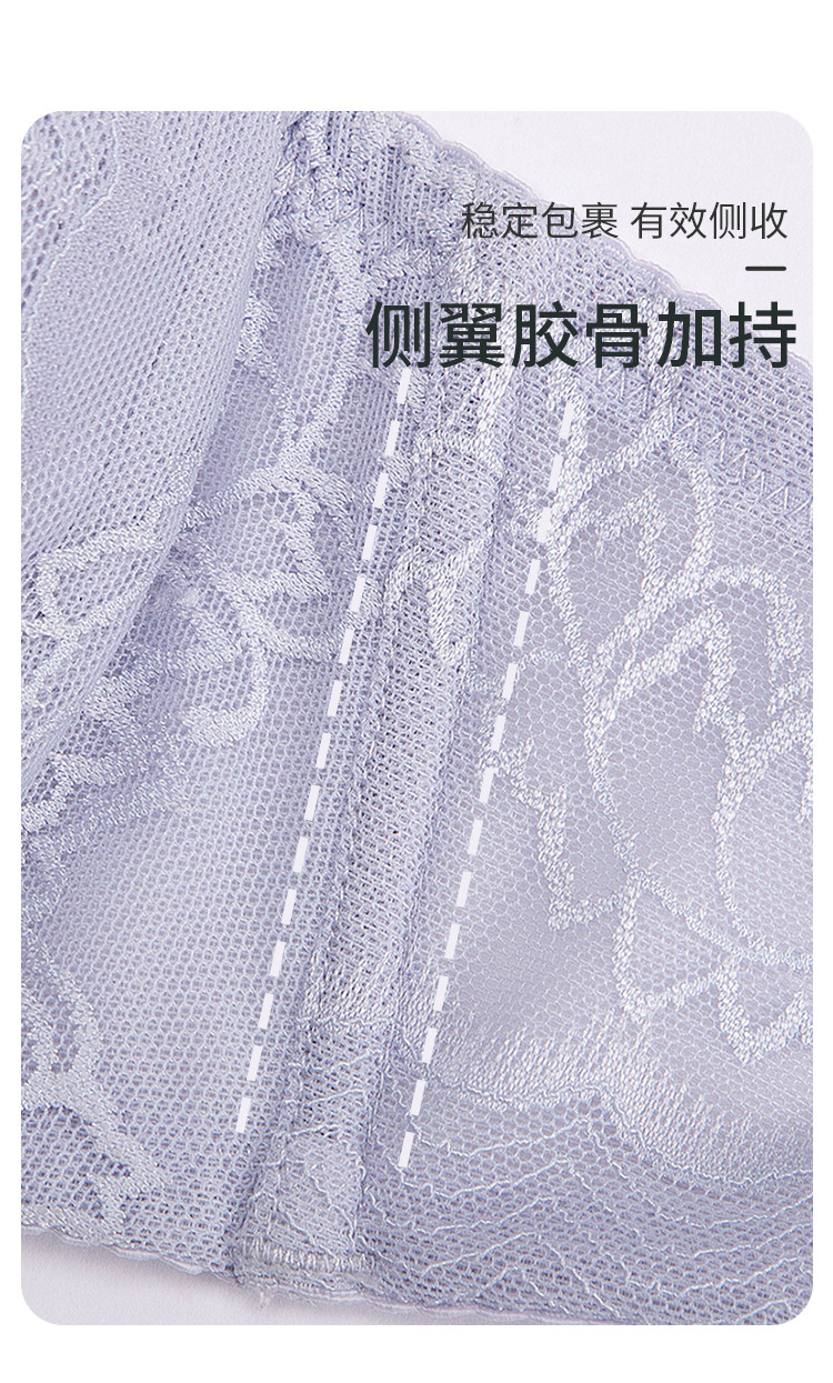 商品名称:【蕾丝聚拢】大胸显小记忆钢圈文胸罩薄款透气侧收副乳内衣女 513355