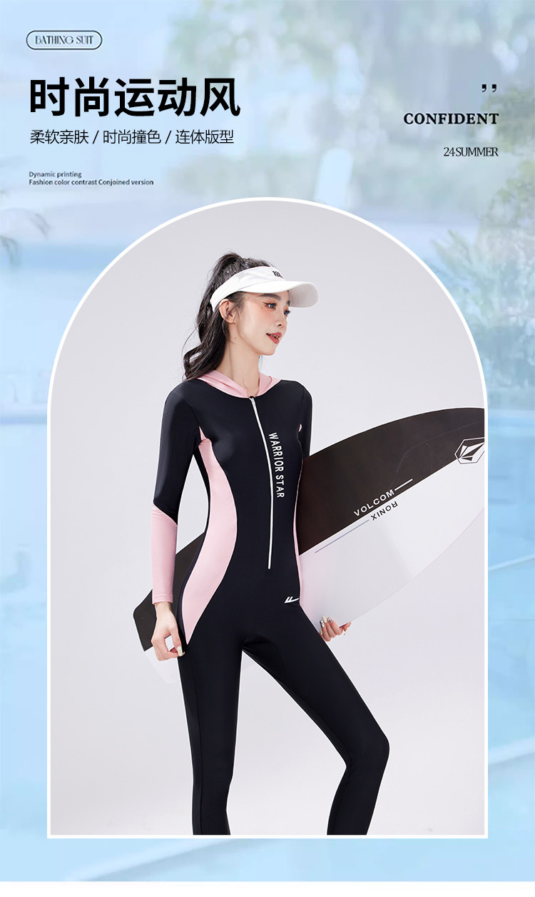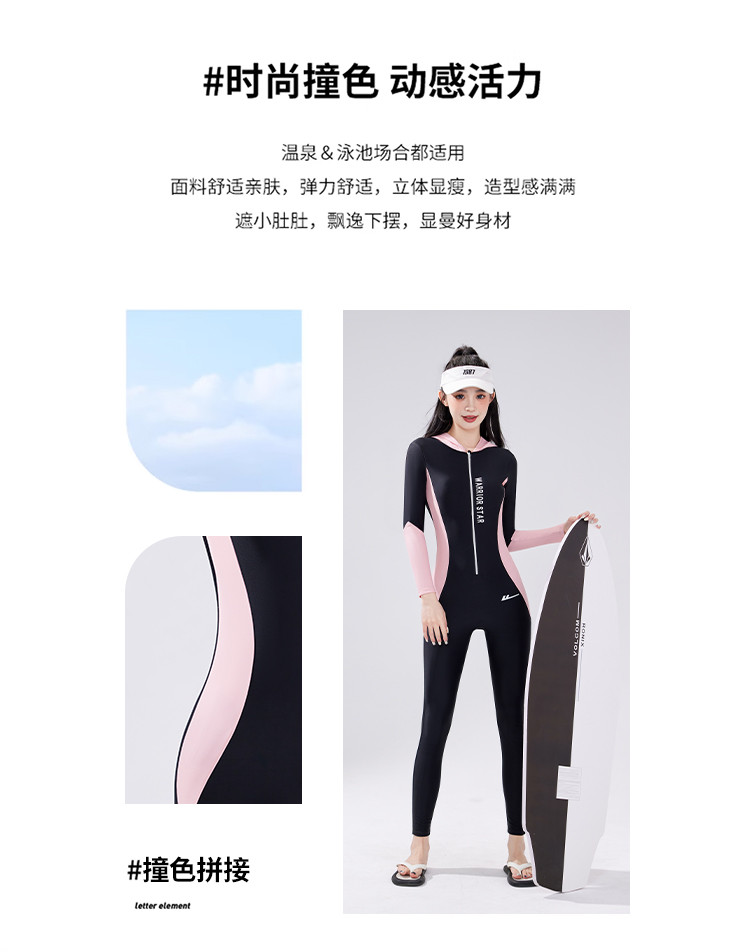 商品名称:泳衣女士高级感连体泳衣遮肉显瘦修身泡温泉海边沙滩冲浪泳衣女士 839507