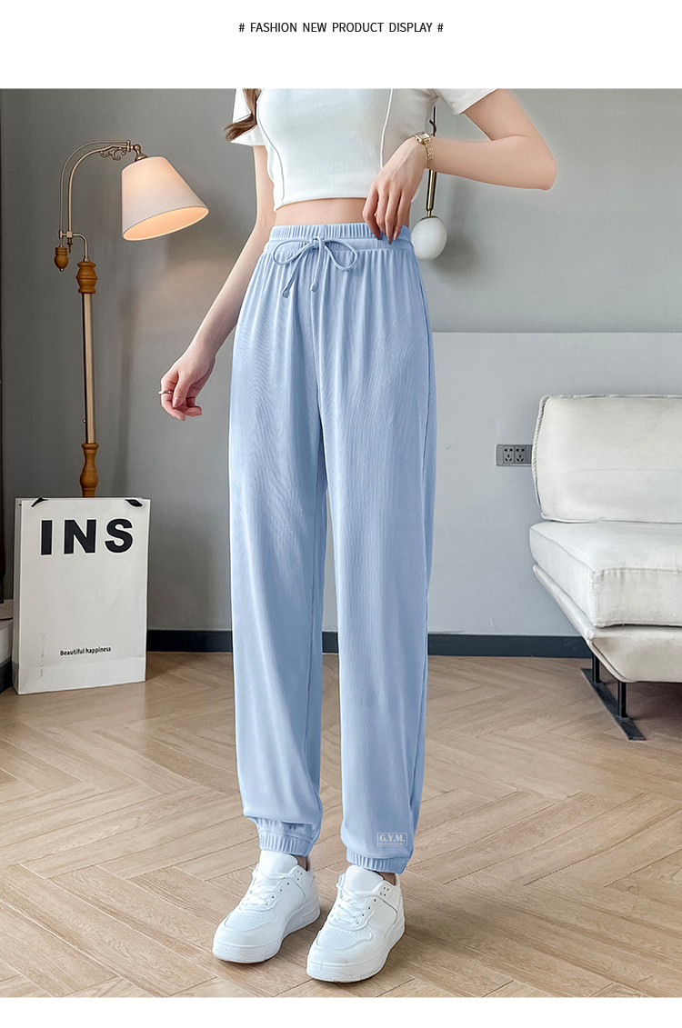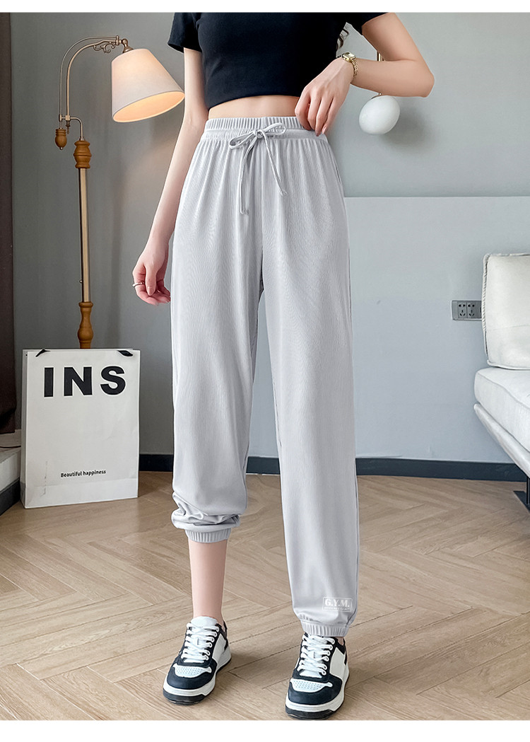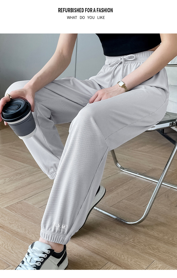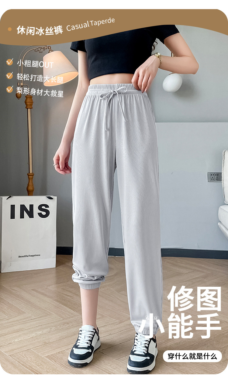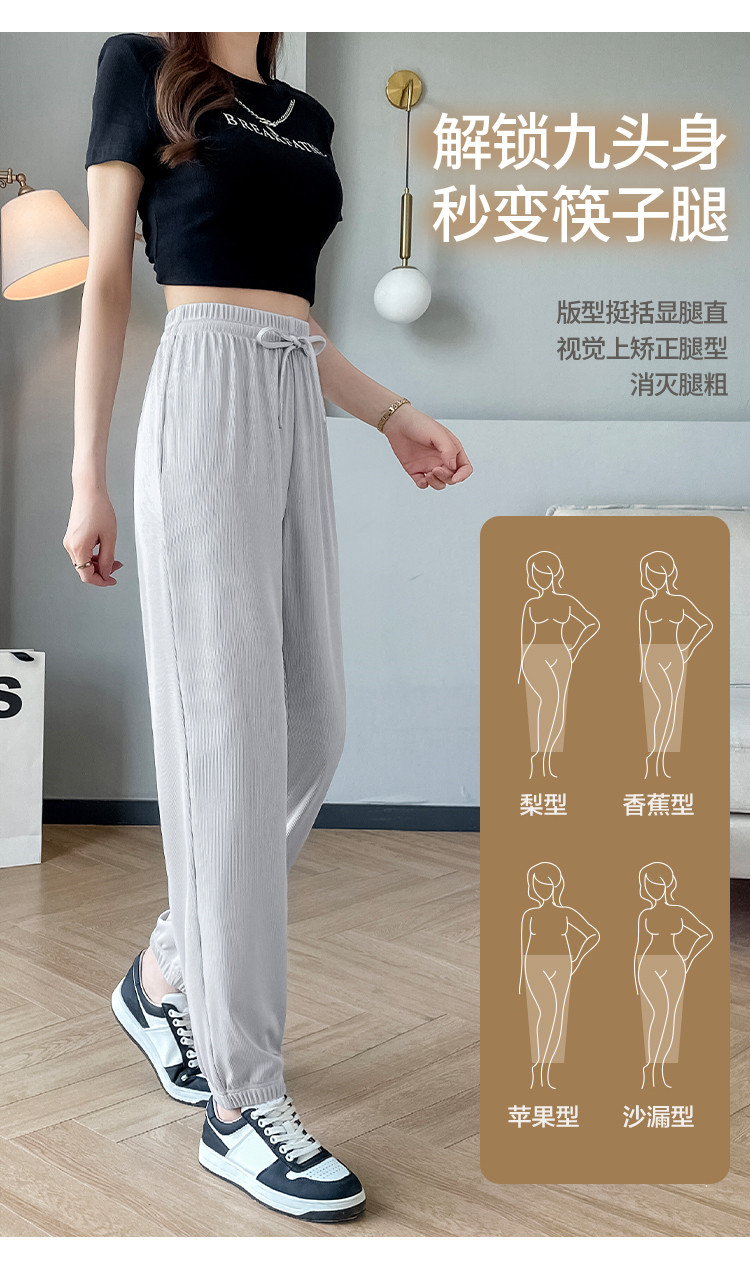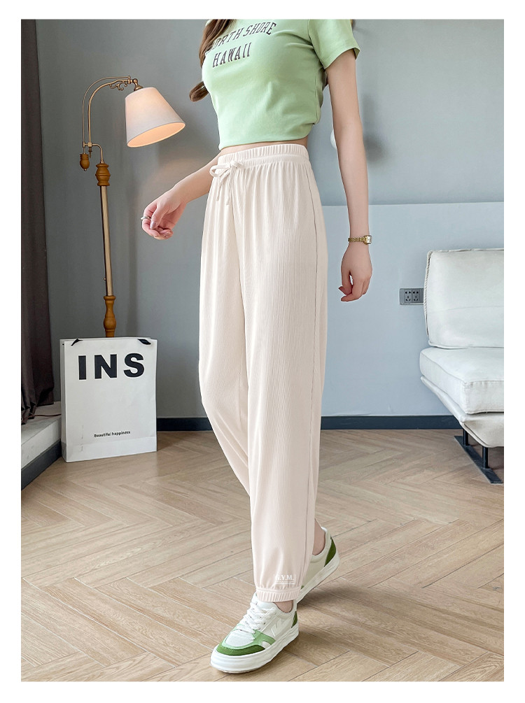 商品名称:【女装】夏季女式宽松设计感休闲长裤女薄款垂感显瘦橡筋束脚裤 743443