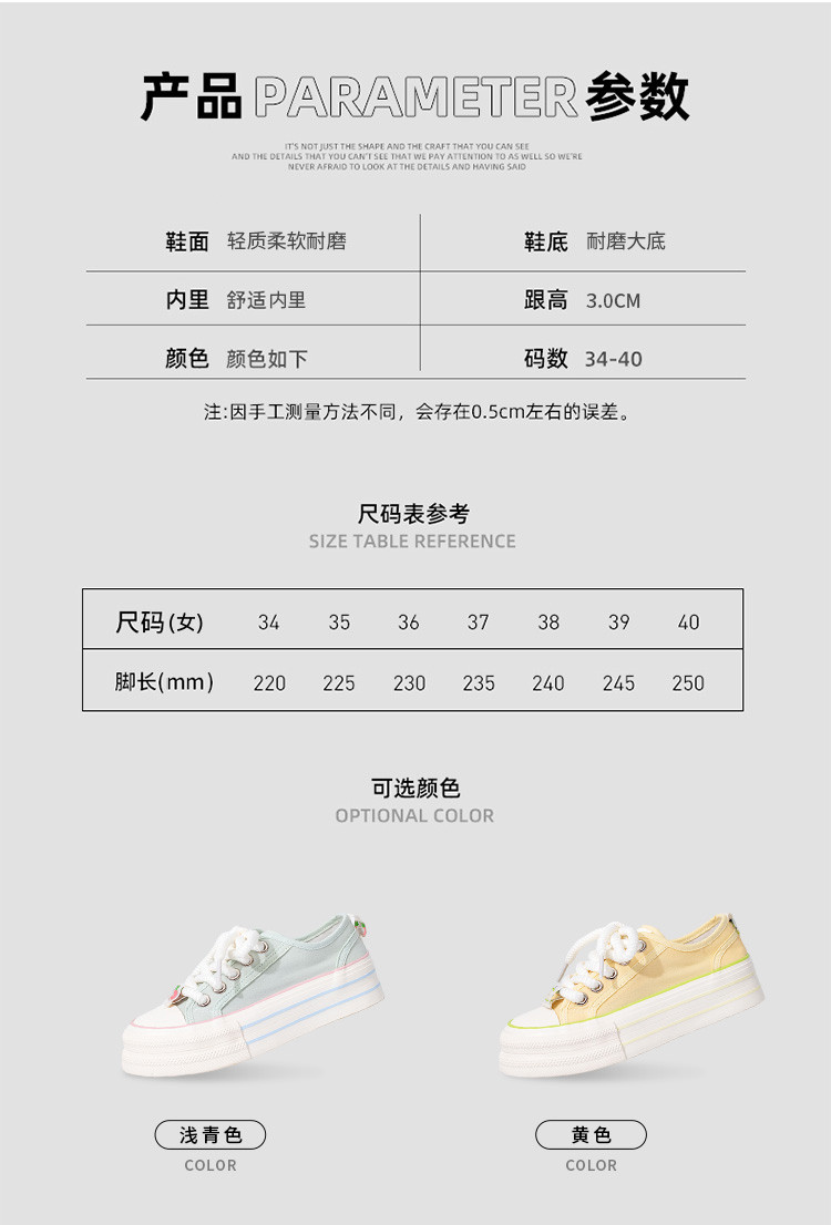 商品名称:帆布鞋女2025年爆款夏季薄款低帮厚底帆布鞋百搭小白鞋女板鞋 349384