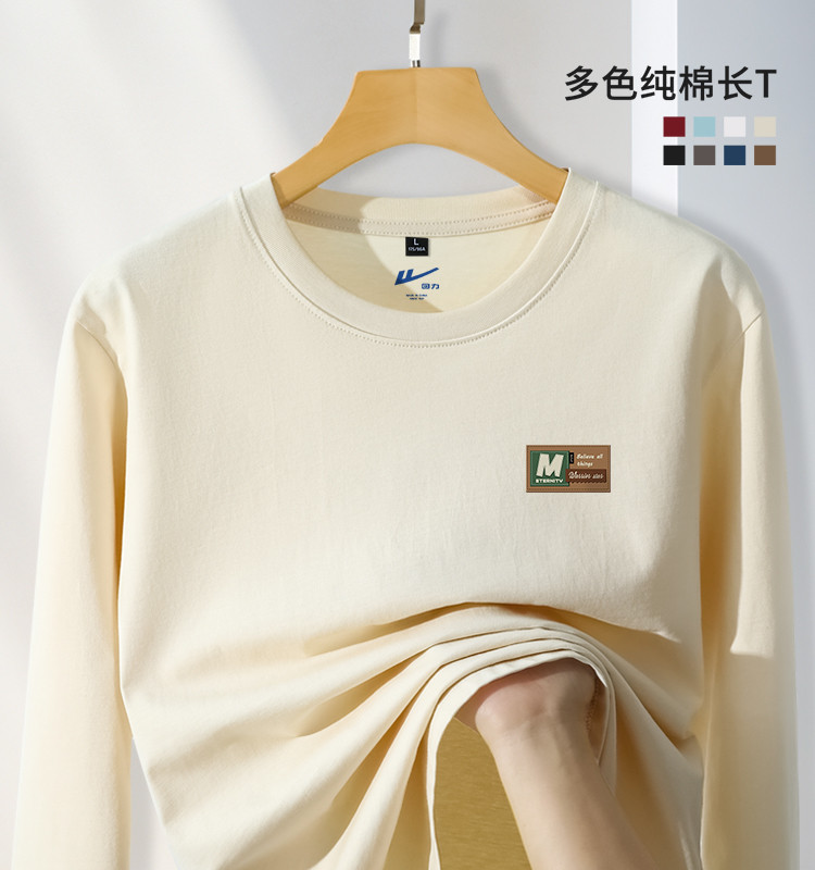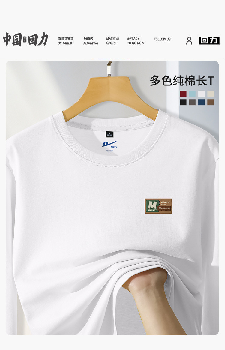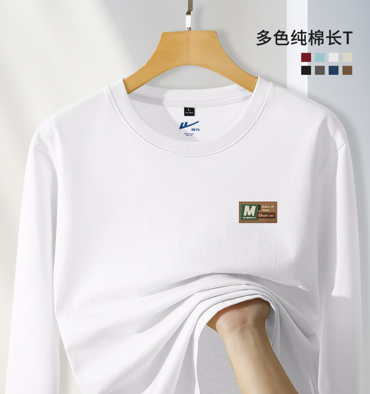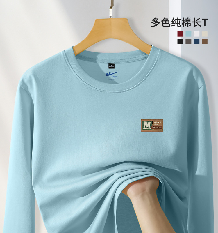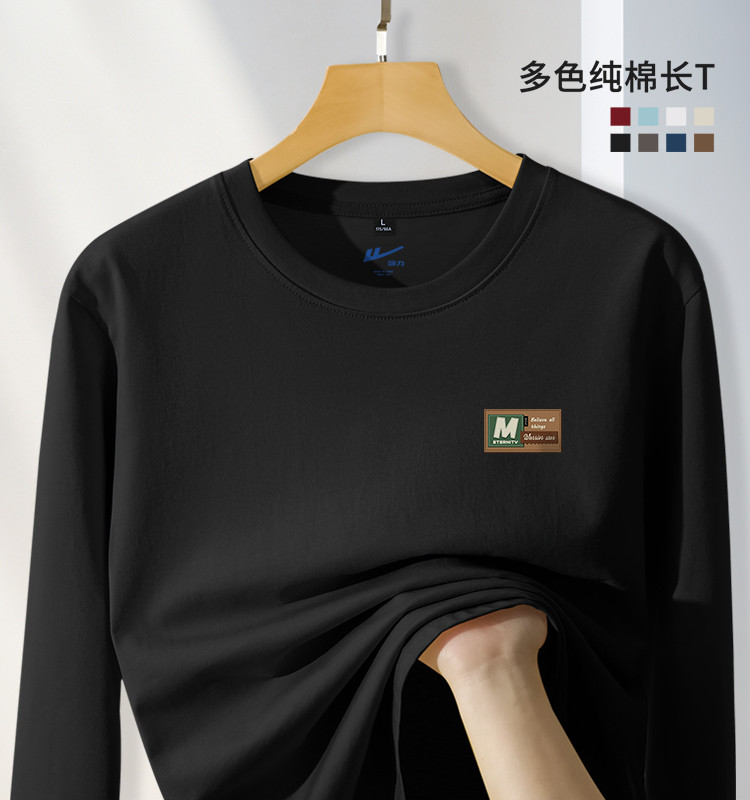 【纯棉款】男士圆领长袖内搭春秋港风潮牌简约宽松大码运动T恤男 565779