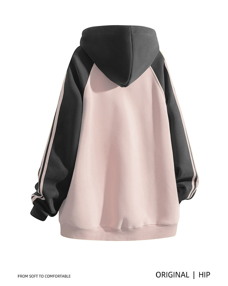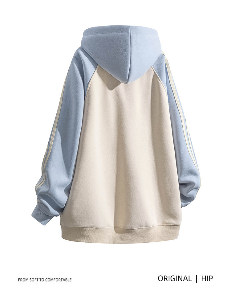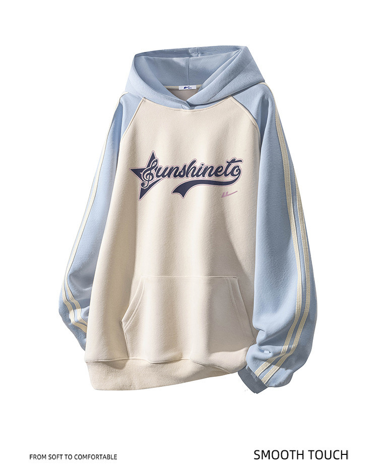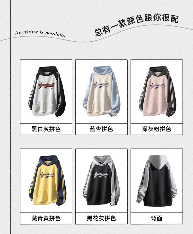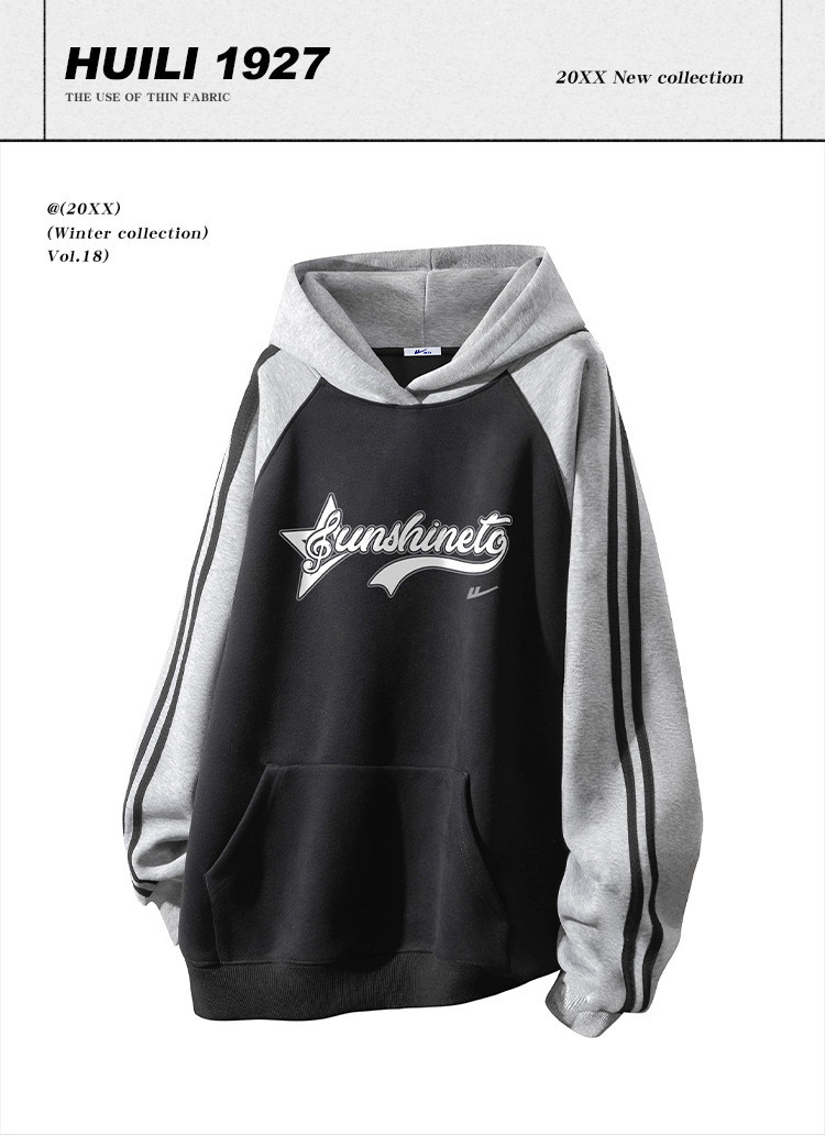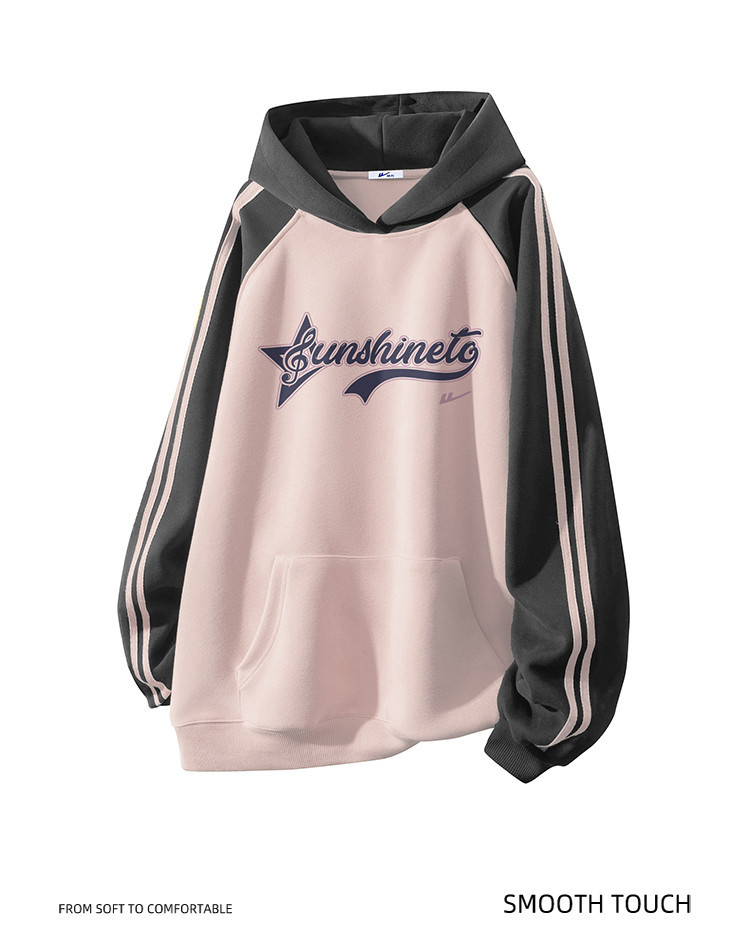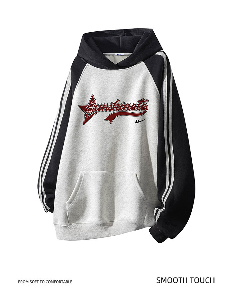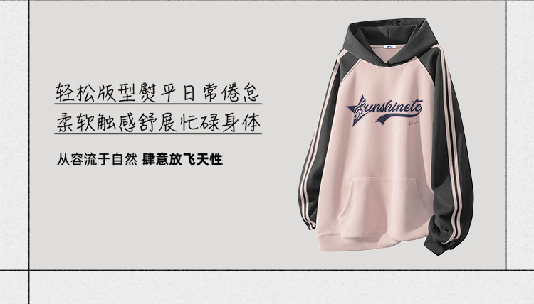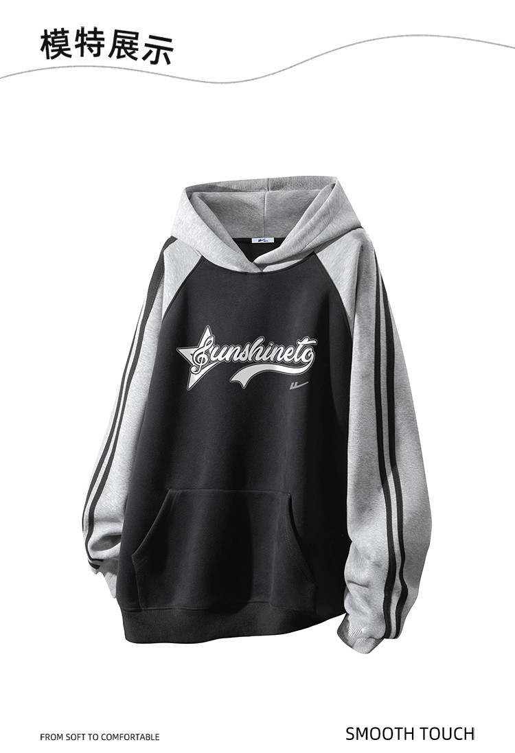 商品名称:【加绒加厚】情侣美式字母插肩袖卫衣男女重磅保暖连帽衫外套 078355